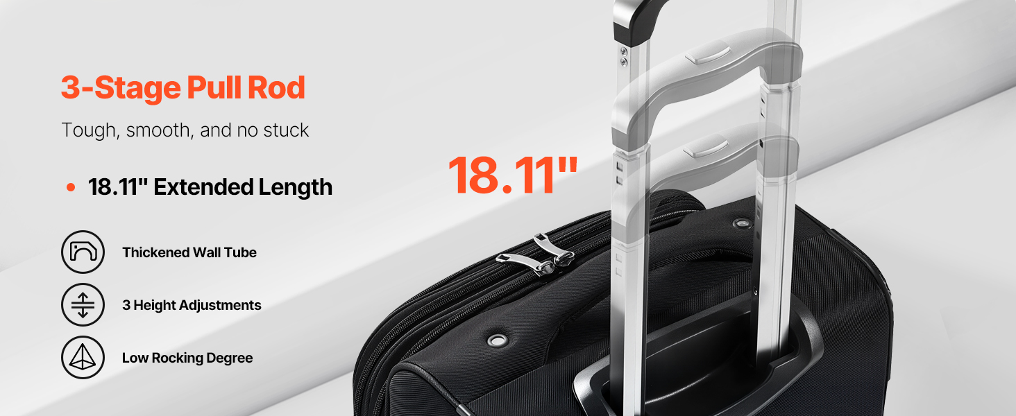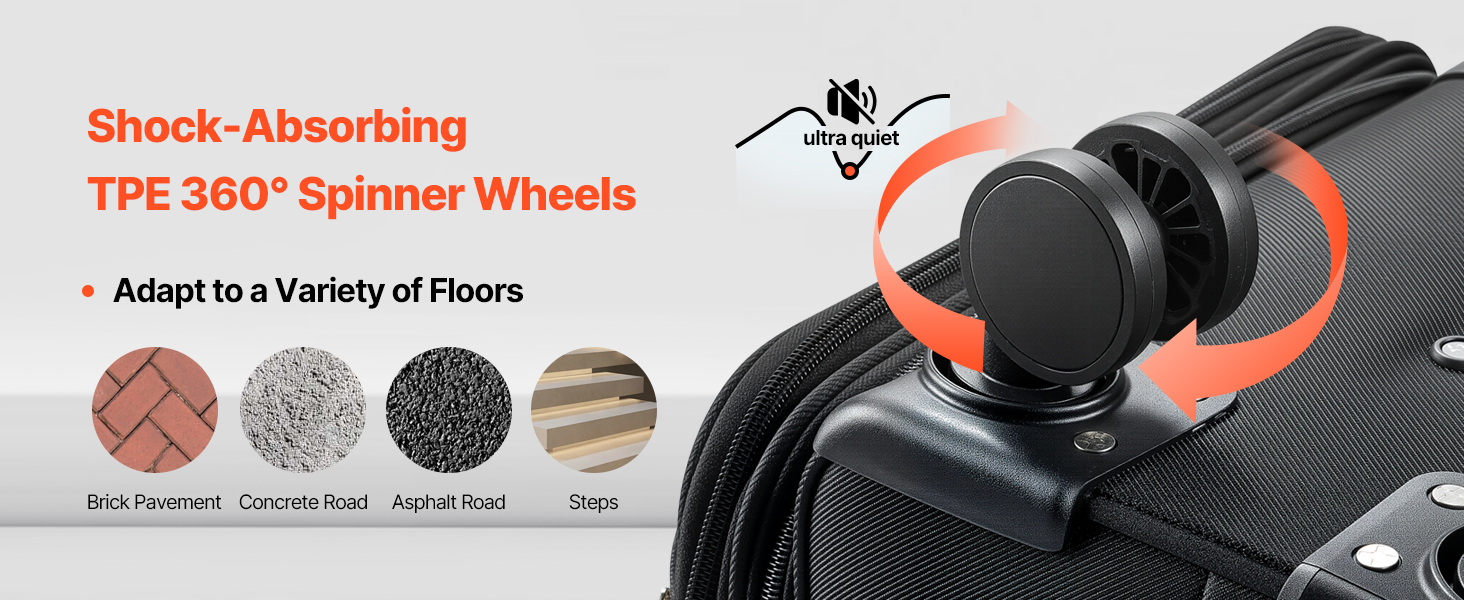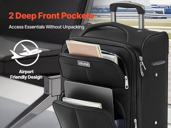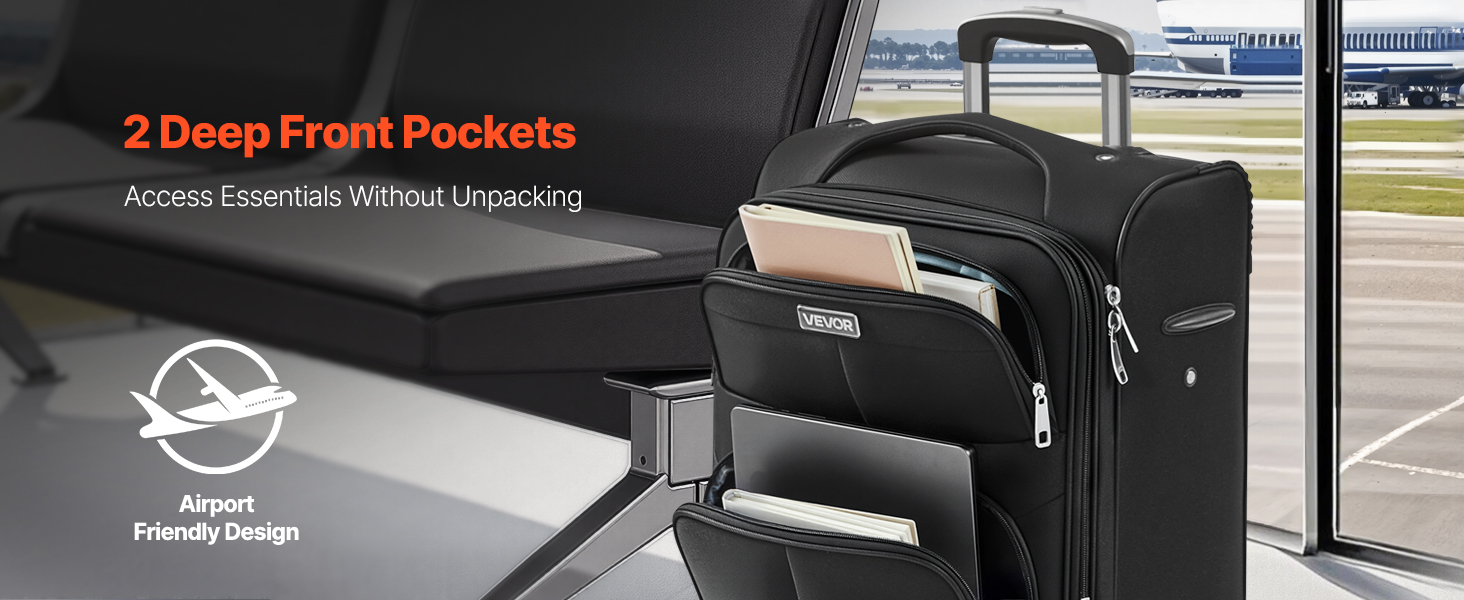 VEVOR Softside Expandable Luggage with Spinner Wheels, 20 inch / 50.8 cm Softside Carry on Luggage, Lightweight Checked Suitcase with Expandable Zippered Pocket and TSA Lock, Black