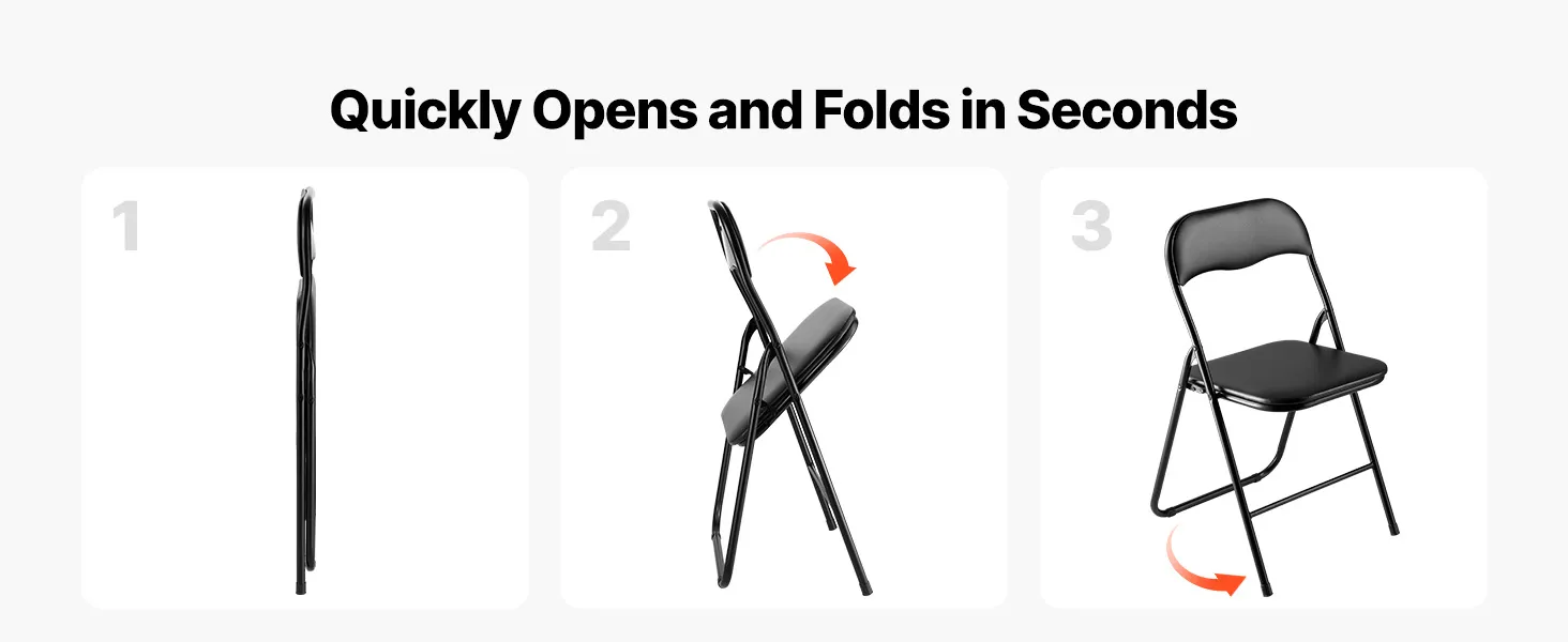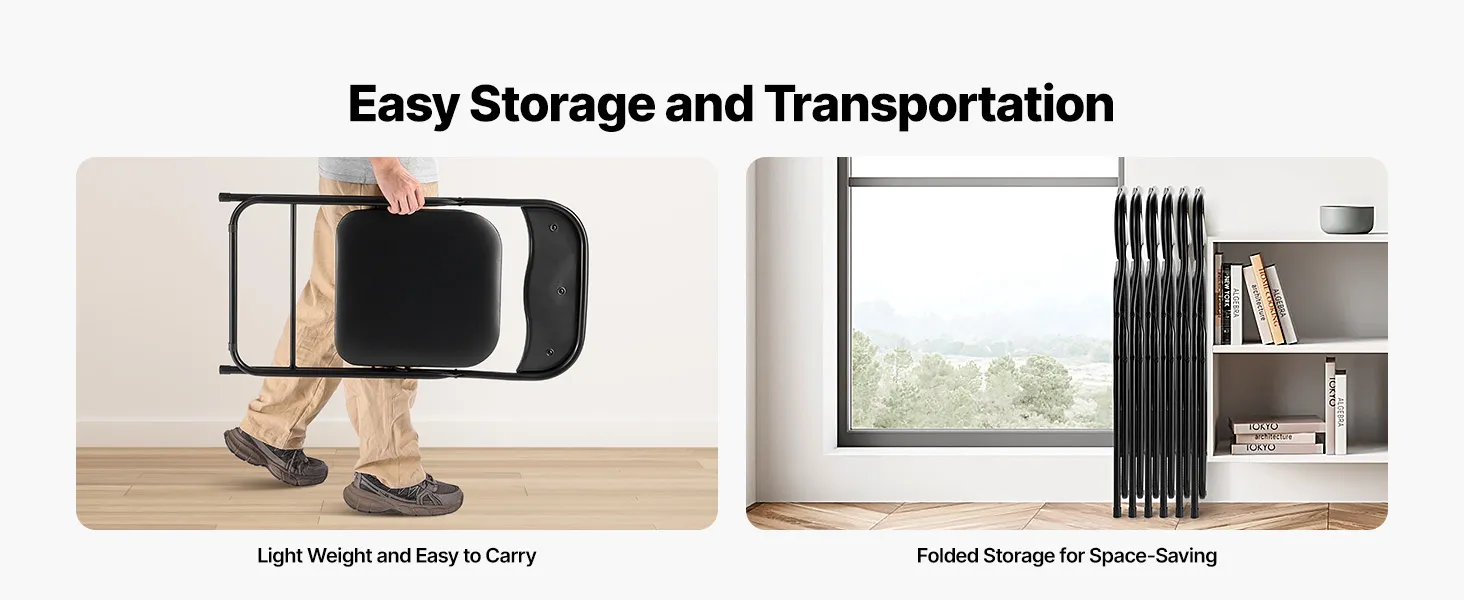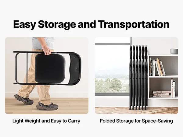 • Easy to Fold & Carry: Quickly set up for use or fold flat for storage in corners or vehicles, saving valuable space. Weighing only 7.5 lbs / 3.4 kg, it’s easy to move anywhere needed, making it an ideal backup seat for family gatherings and commercial events