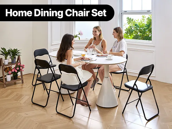 VEVOR Set of 6 Foldable PVC Leather Chairs with Metal Frame, Padded Seat, 158 kg Capacity, Portable & Stackable, Black