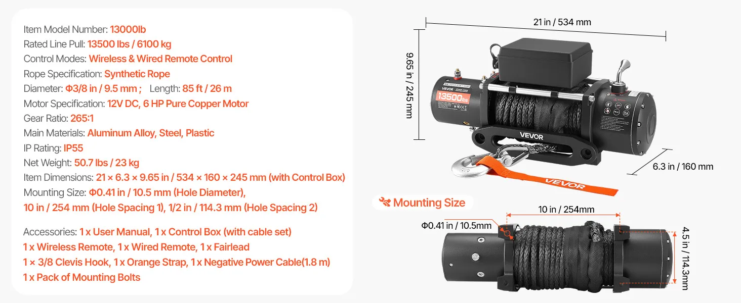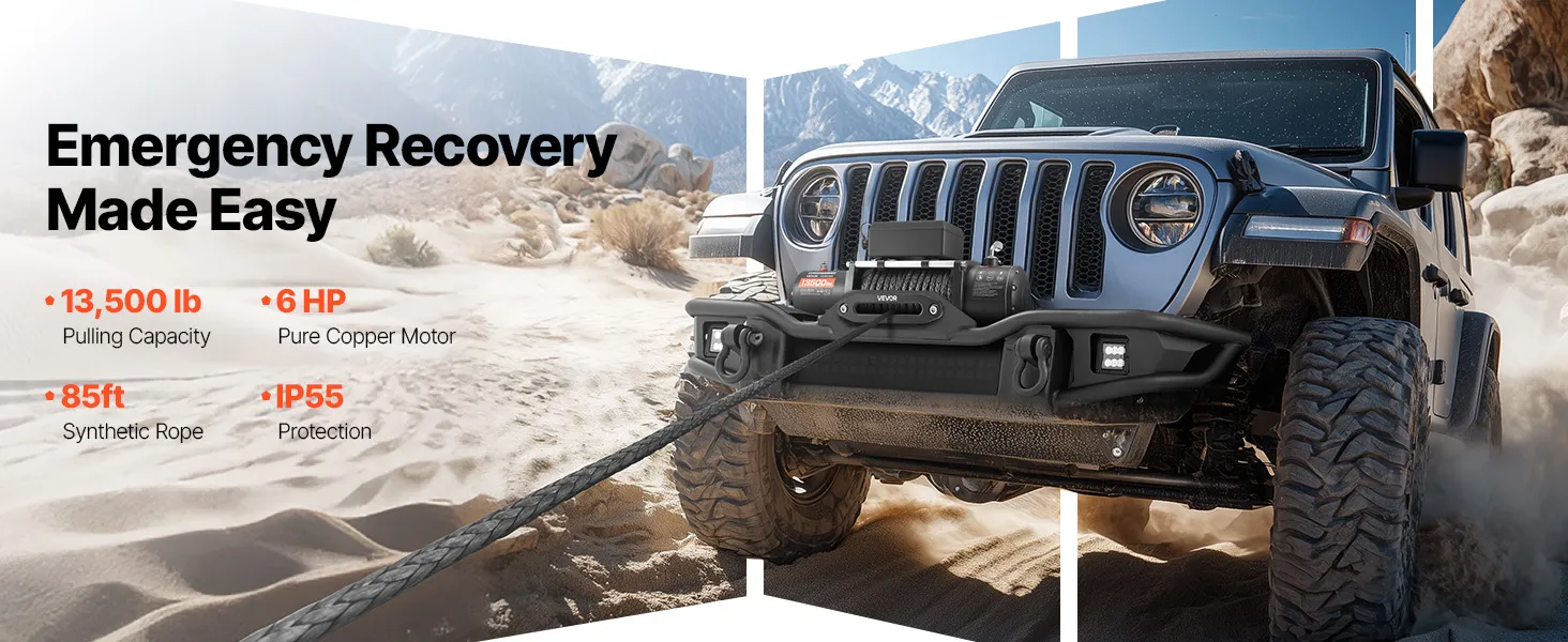 This electric winch delivers strong pulling power, helping you pull vehicles out of mud or sand with ease. Enjoy off-road trips with smooth recovery every time.