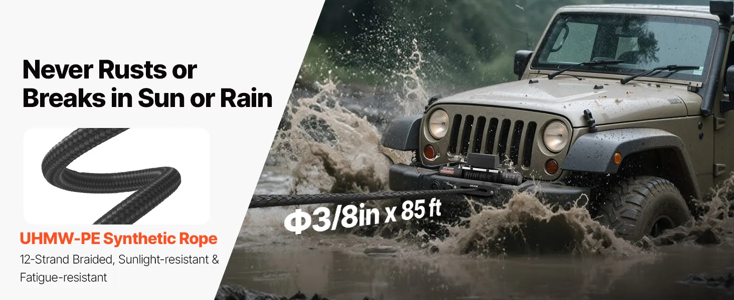 VEVOR Electric Winch, 6100 kg Load Capacity, 12V DC Truck Winch with Φ9.5 mm x 26 m Synthetic Rope, Wireless & Wired Remote Control, IP55 Waterproof for Towing Off-Road SUV Jeep Trailer Boat
