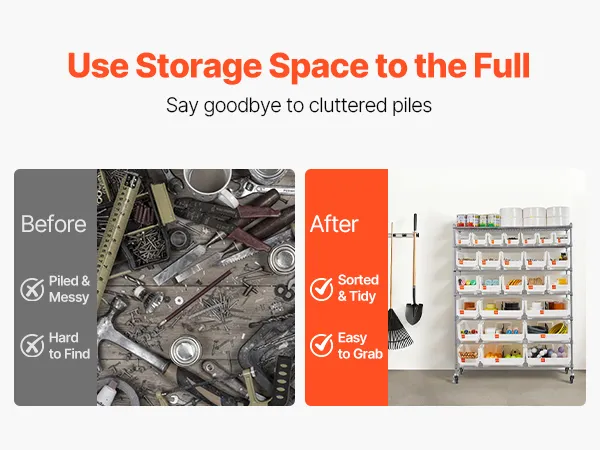 This garage bin organizer fits studios, garages, workshops, craft rooms, and kitchens with equal charm. Your tools, materials, and everyday items line up neatly, and your space looks instantly smarter.
