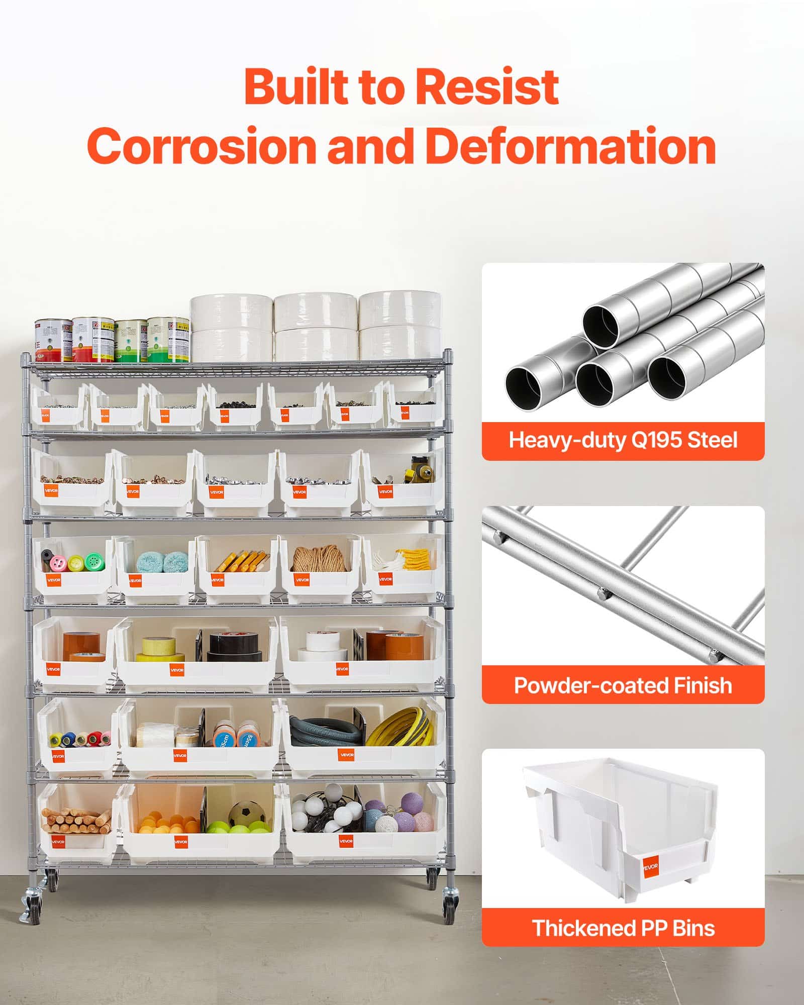 VEVOR 7-Tier Rolling Bin Storage Rack, 26 Organizer Bins, Bin Rack Storage Steel Wire Shelving System with Wheels, Mobile Tool Organizer for Garage, Warehouse, Office, Restaurant, Classroom, Kitchen