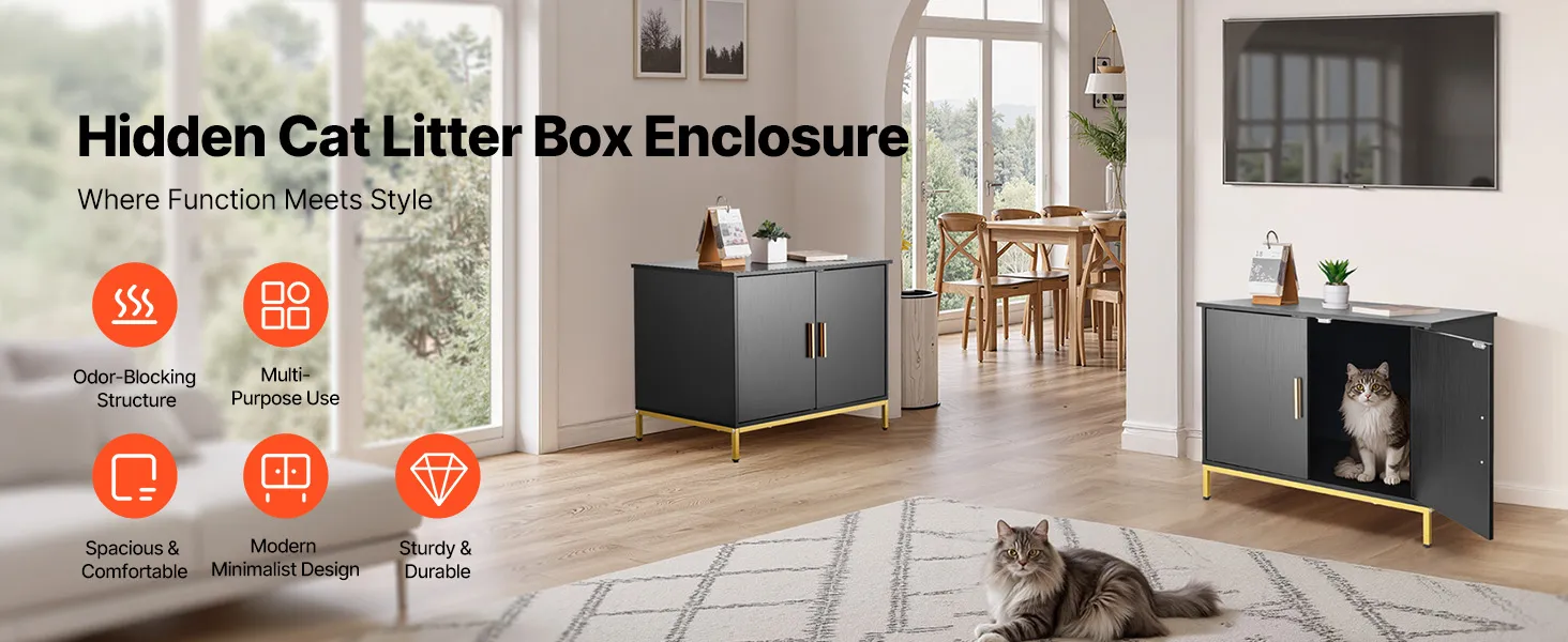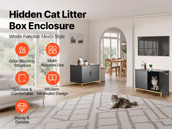 The cat litter box furniture features an enclosed structure combined with a waterproof finish, which resists liquid penetration and blocks odors. Provide you with fresh indoor air.