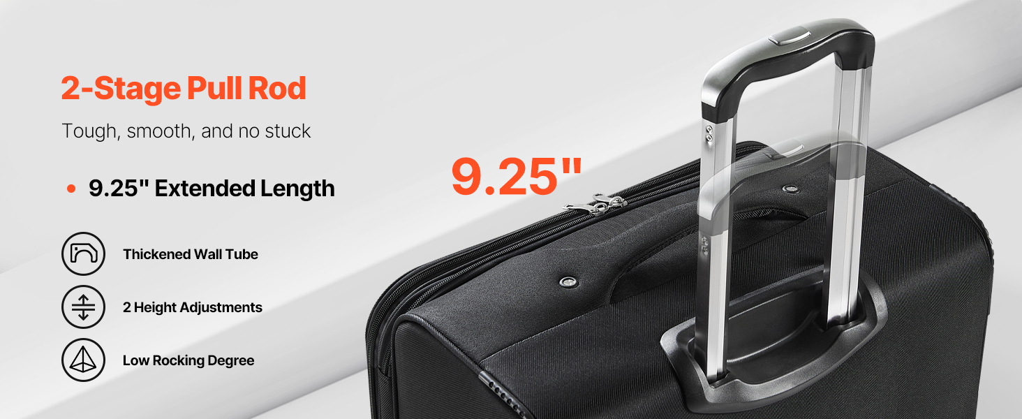 VEVOR Softside Expandable Luggage with Spinner Wheels, 24 inch / 71 cm Softside Checked Large Luggage, Lightweight Checked Suitcase with Expandable Zippered Pocket and TSA Lock, Black