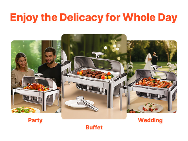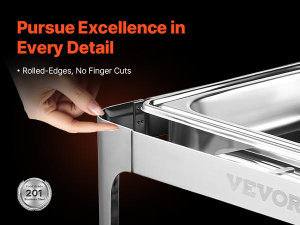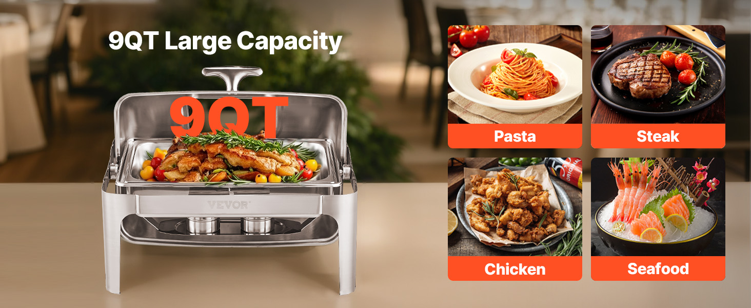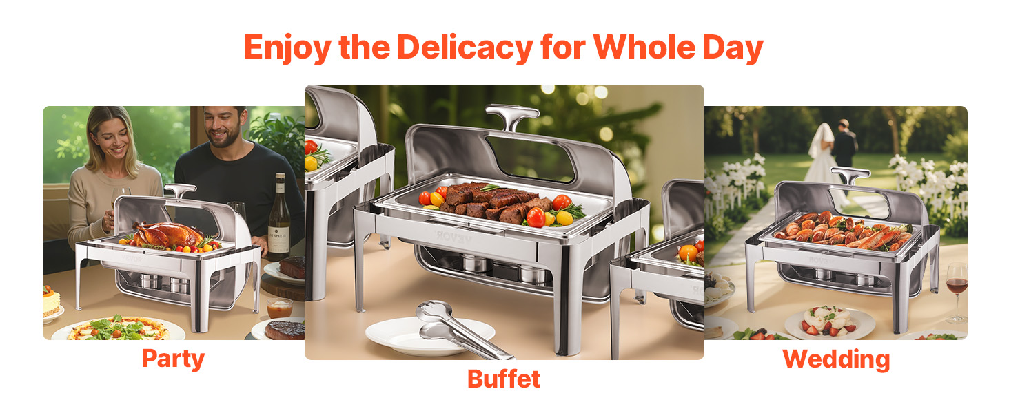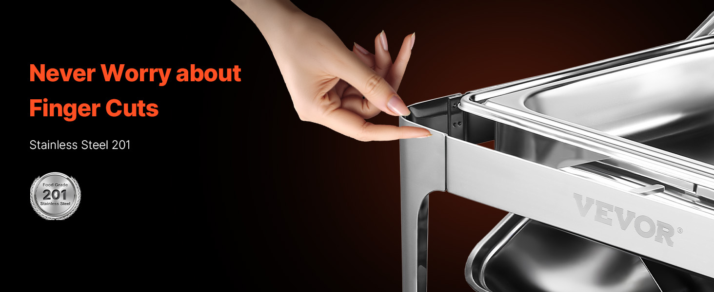 Q1: Can this chafing dish be used for both hot and cold food? A1: This chafing dish is specifically designed to keep food warm. While it’s ideal for hot dishes, it can also be used for cold items as long as they are stored without heating. For best results, we recommend using it for hot food. Q2: Is the chafing dish easy to clean? A2: Yes, the chafing dish is made from durable stainless steel, which makes cleaning a breeze. The food pan and water pan are both removable for easy washing, and the frame can be wiped clean after each use. Q3: Can I use this chafing dish outdoors? A3: Absolutely! This chafing dish is perfect for both indoor and outdoor events such as buffets, parties, or catering services. Just be sure to use it in a safe, stable area to prevent tipping.