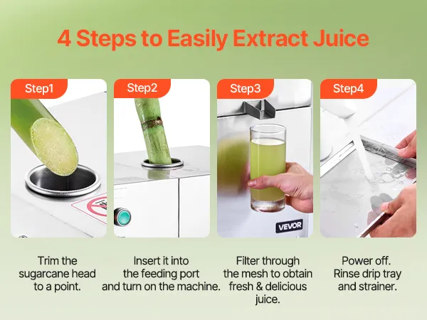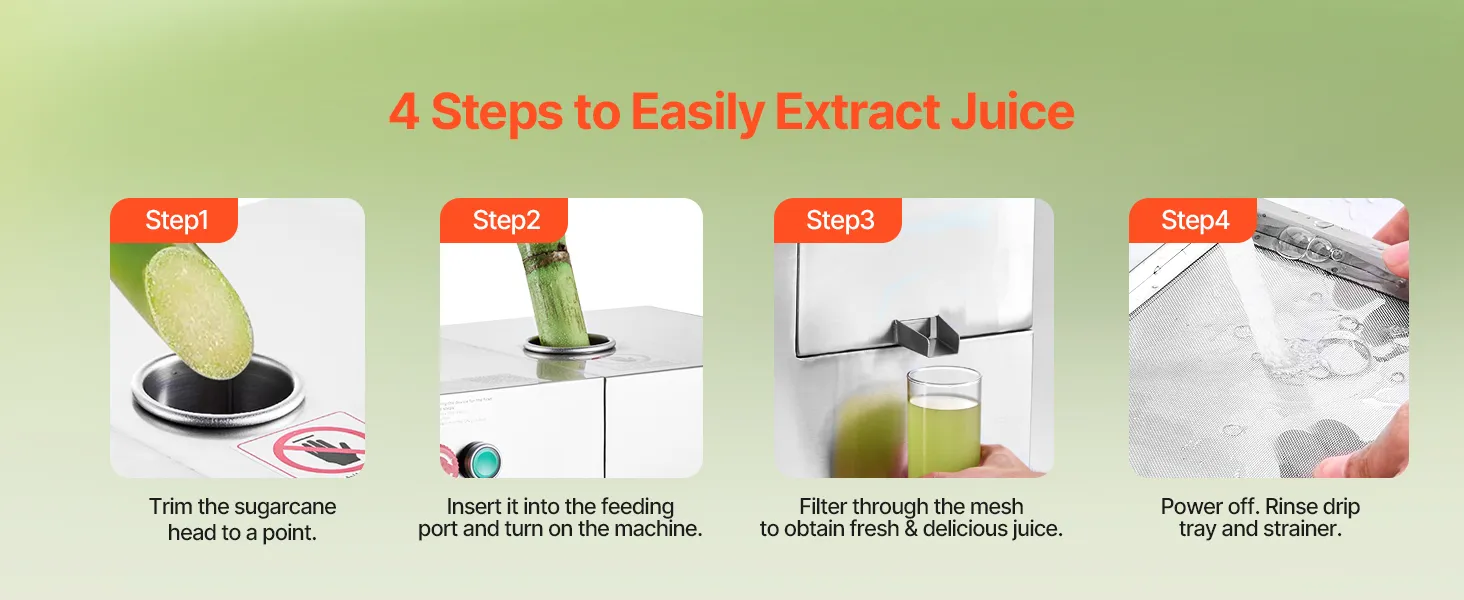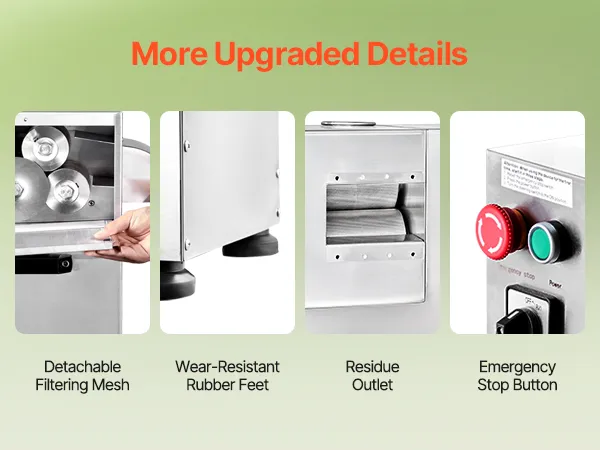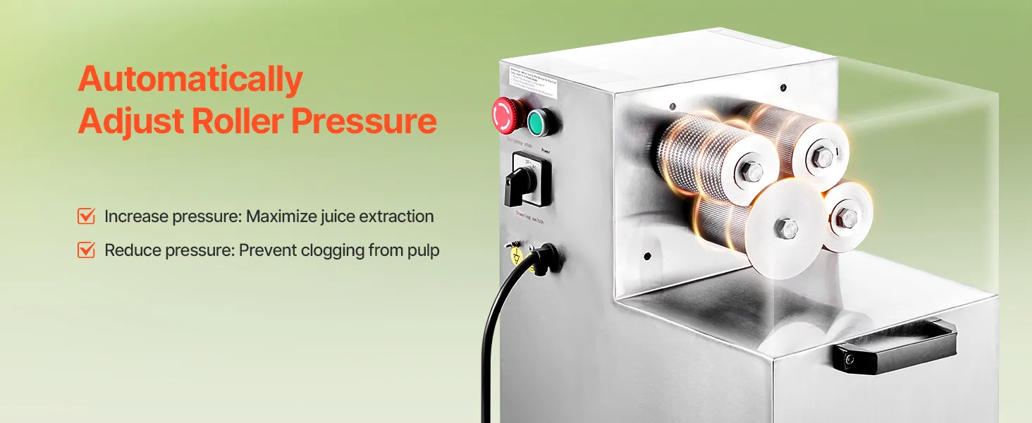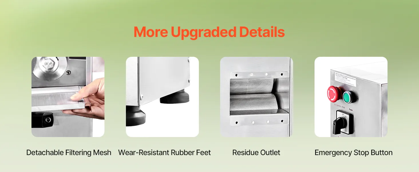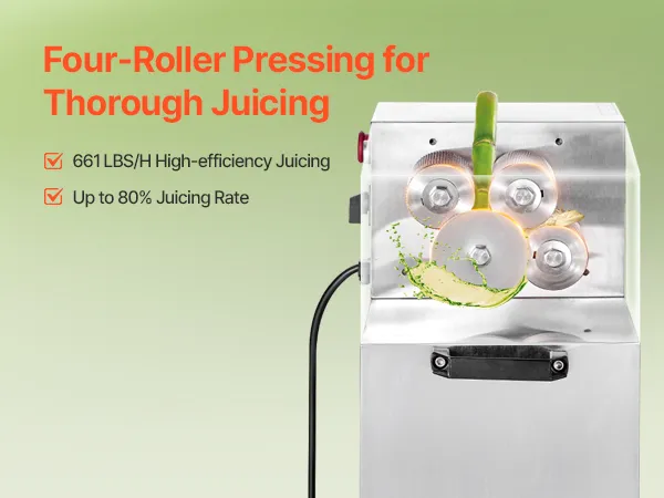 This commercial electric sugar cane juicer features an 800W pure copper motor and 4-roller design, capable of extracting up to 661 lbs (300 kg) of juice per hour. Built with a durable stainless steel body, it’s made to handle heavy-duty daily use in any work environment.