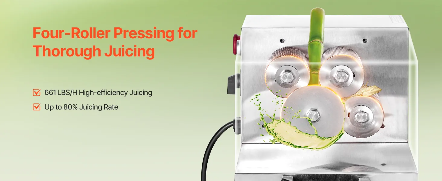 VEVOR Commercial Sugar Cane Juicer, 800W Electric Sugarcane Juicer Machine with 300KG/H High Output, 4 Stainless Steel Rollers, Sugar Cane Press Juice Extractor Squeezer for Home/Commercial Use
