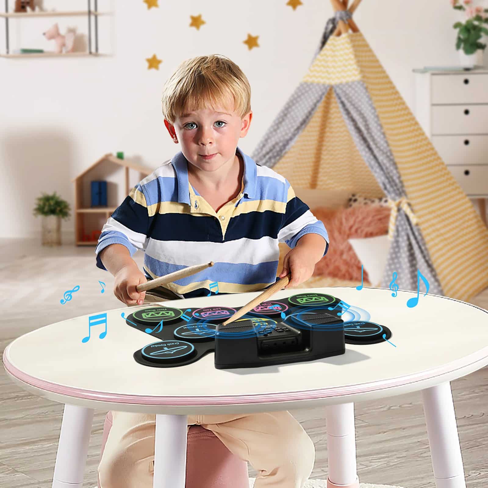 Due to built-in dual speakers, our electronic drum set for kids delivers strong, clear sound whether your kid is practicing at home or performing outdoors. It creates an ideal atmosphere in any setting.