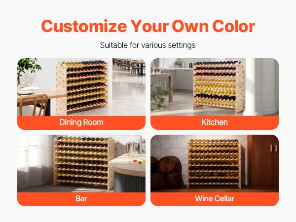 Crafted from natural pine with an unfinished surface (no clear coat), this wine storage rack allows DIY coloring. Its minimalist design blends effortlessly into dining rooms, kitchens, bars, or wine cellars, harmonizing storage with interior style.