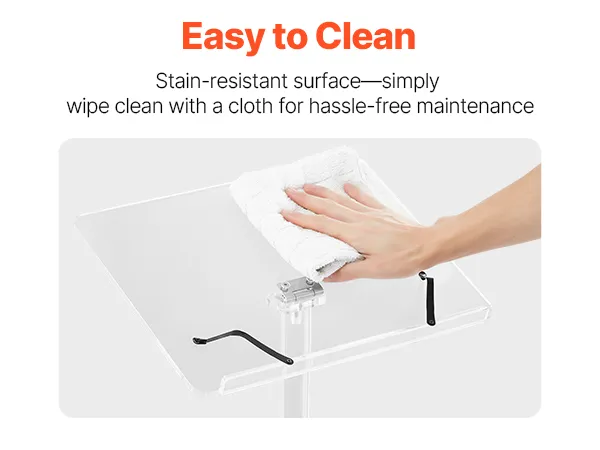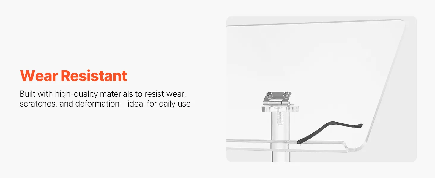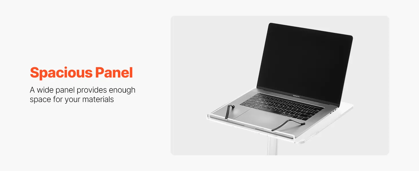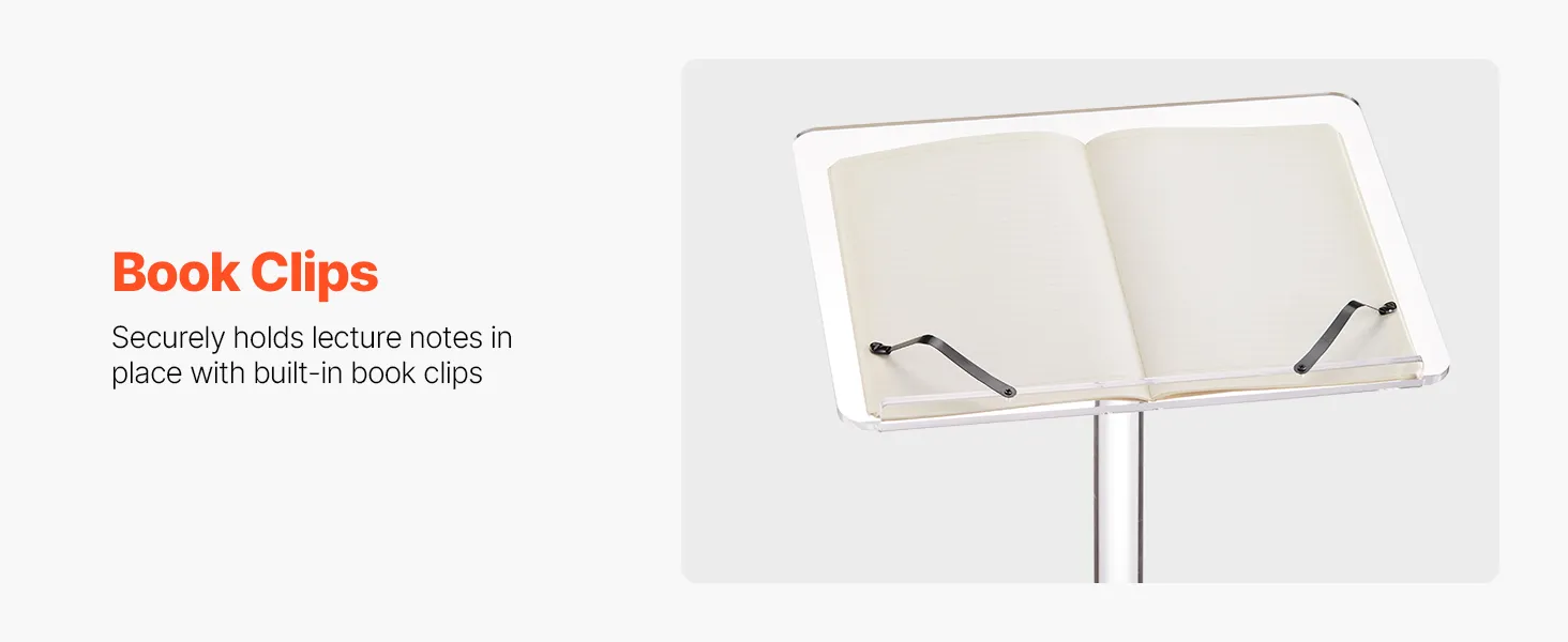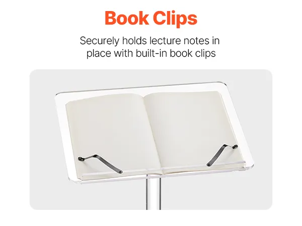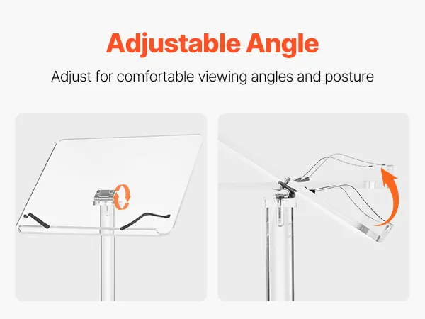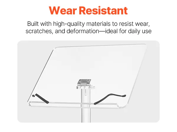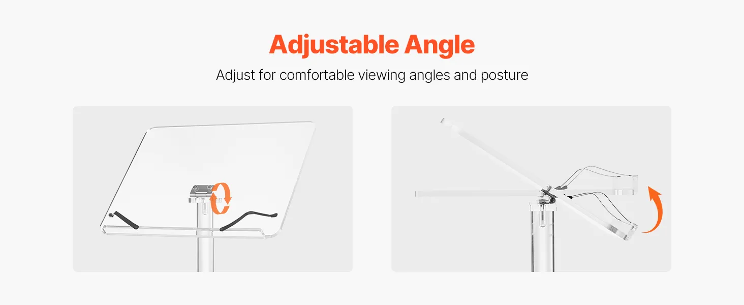 VEVOR Podium Stand, 1100 mm Acrylic Lectern, Portable Laptop Desk with Wide Reading Surface, Book Clips, Adjustable Angle, Floor-Standing, for Classroom, Wedding, Conference, Lecture and Concert