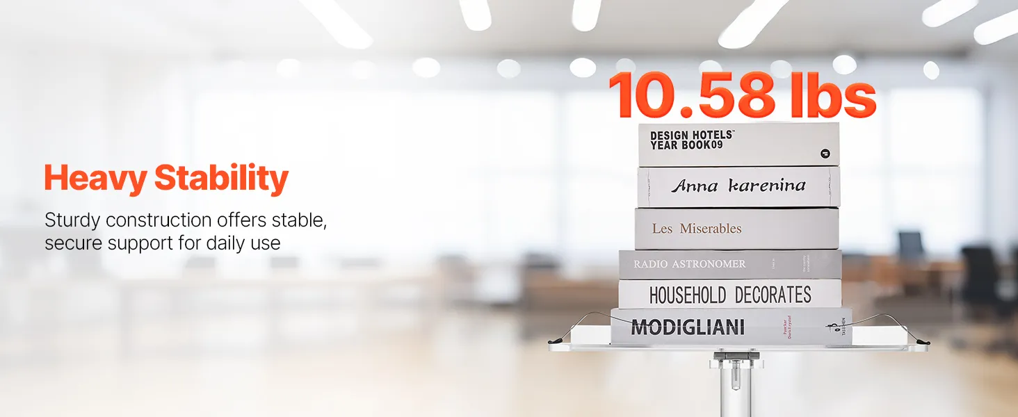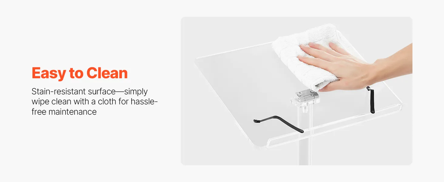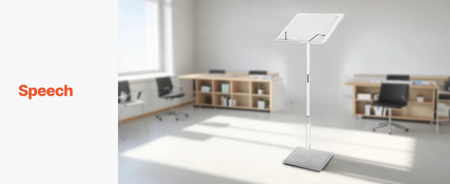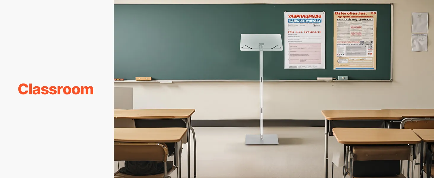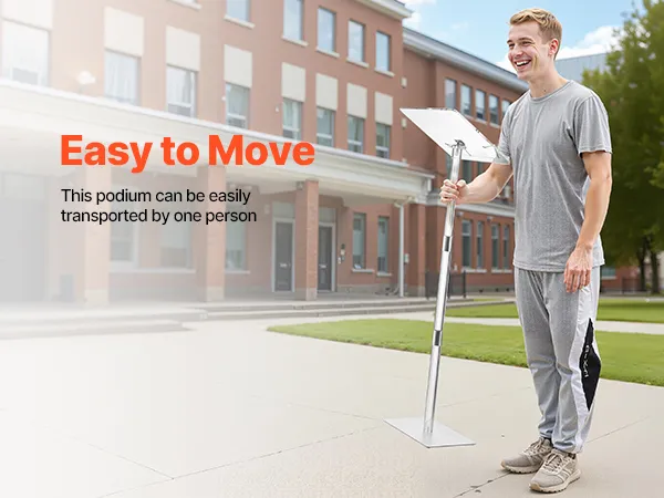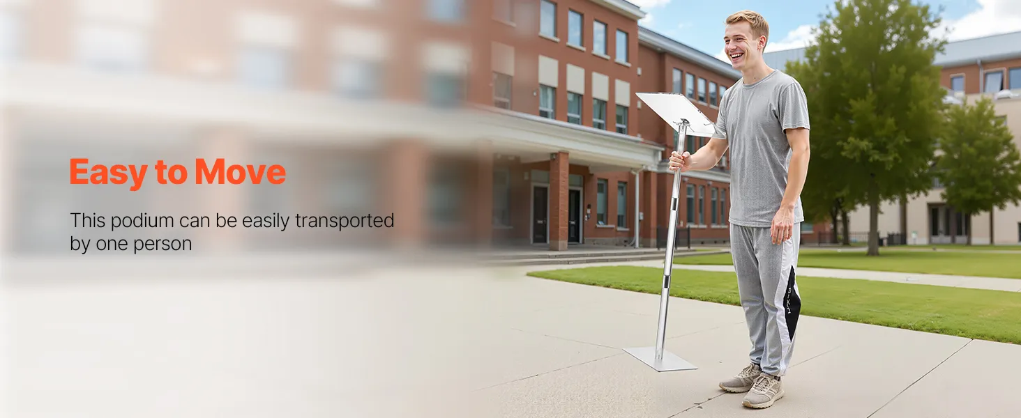 This lightweight podium stand is designed for solo transport. With a compact size, balanced weight, and durable materials, it can be easily lifted or repositioned without tools or help, suitable for educators or speakers needing frequent mobility.