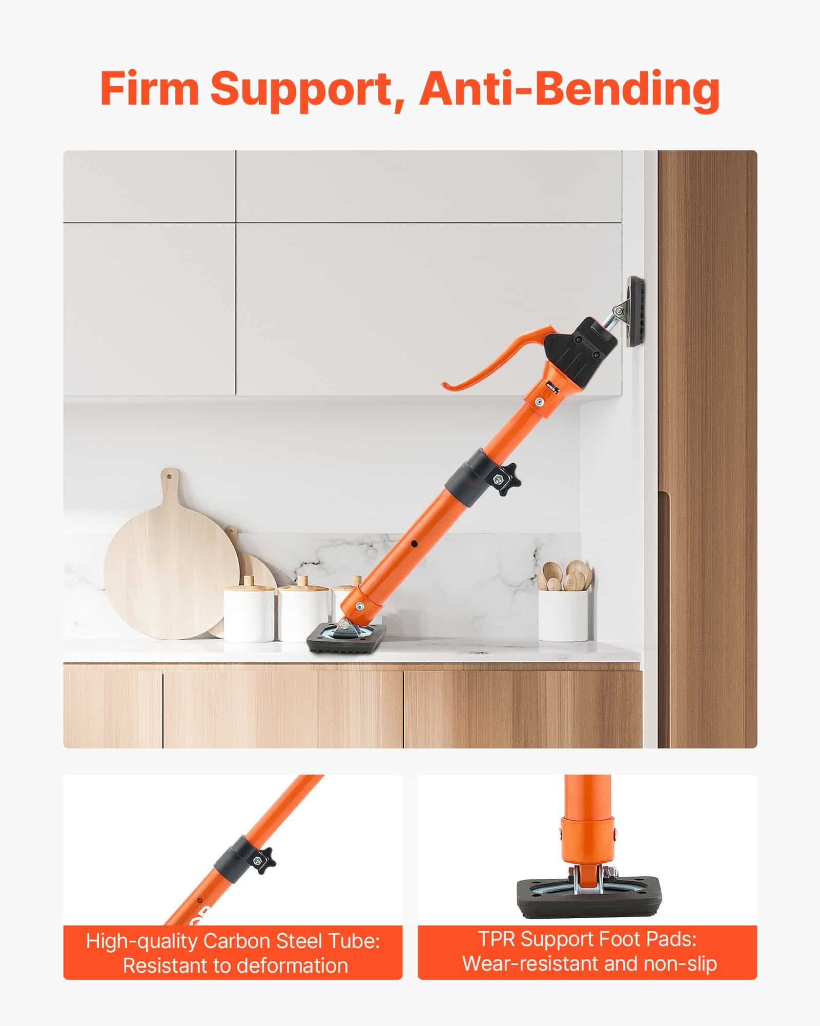 This 2-pack cabinet jack support pole set delivers efficient load support for jobsites, warehouses, and home projects. With a 220 lbs load capacity, adjustable height, and secure lock-in design, it's ideal for lifting or holding cabinets, drywall, and more.