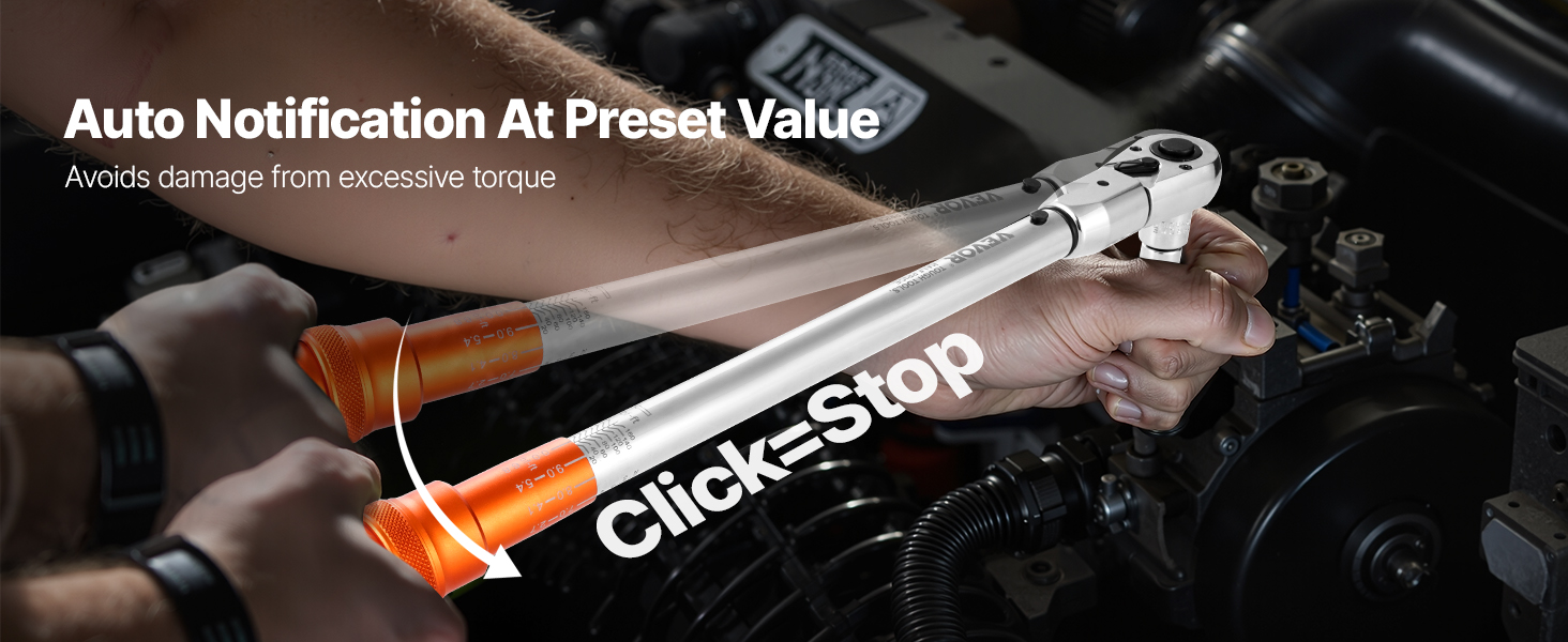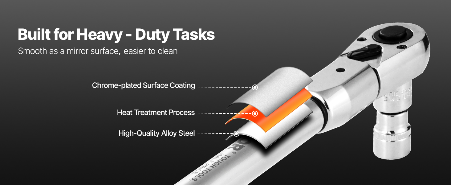 Constructed from high-quality alloy steel and heat-treated with a chrome-plated surface, this click torque wrench provides exceptional strength, accuracy, and durability, making it the ideal choice for professional fastening tasks.
