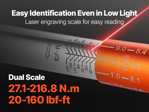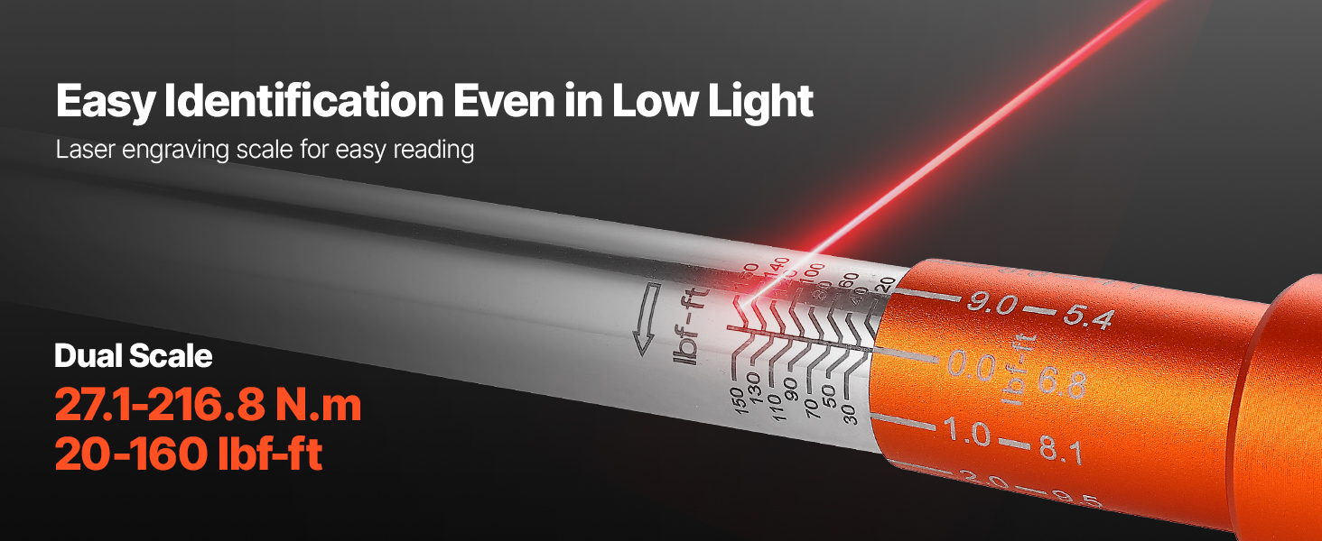 The dual-direction torque wrench features laser-etched scales for clear and accurate readings, even in low-light conditions. The dual-scale design expands the wrench's versatility, making it suitable for a wider range of tasks.