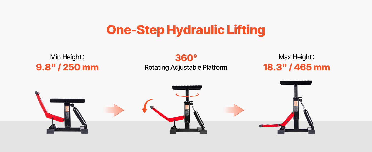 VEVOR Dirt Bike Lift Stand, Motorcycle Jack Lift Stand 1200lbs Capacity and Hydraulic Lift Operation, Hoist Table Adjustable Height 9.8"-18.3" for Dirtbike Repair, Maintenance, Dirt Bike Accessories