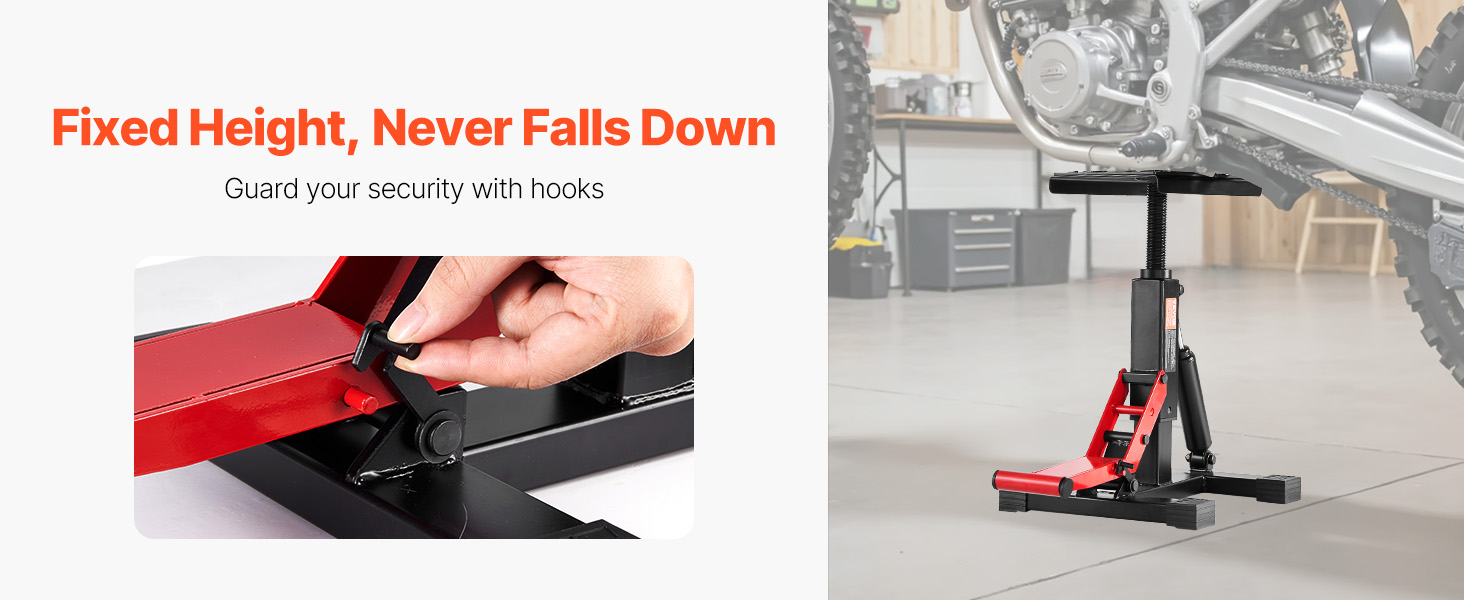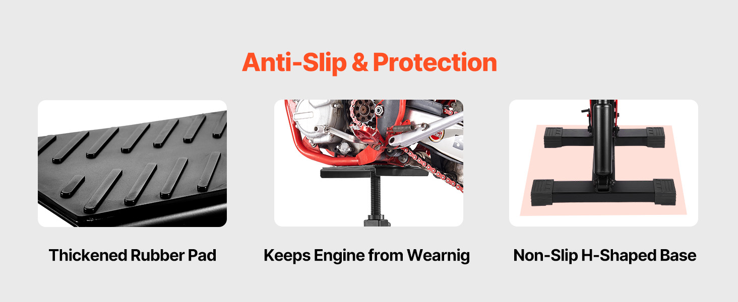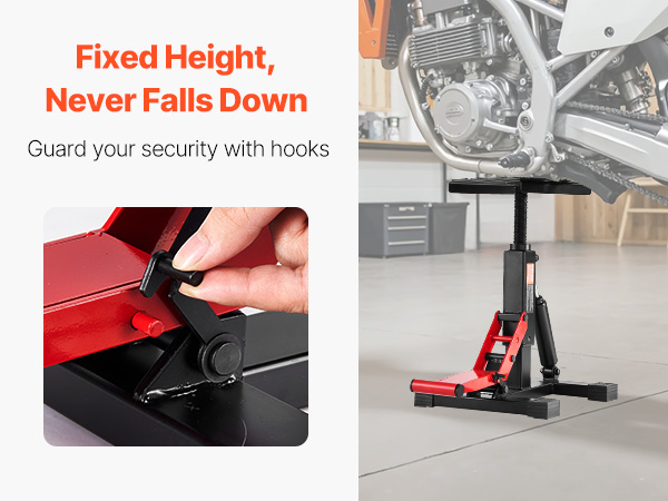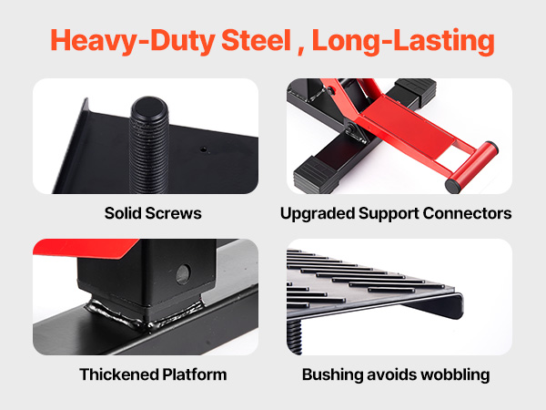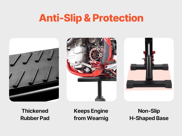 Our motorcycle maintenance stand is crafted from professional-grade reinforced heavy-duty steel, providing stable support for most motorcycles. Resistant to deformation and bending, it is ideal for home repairs, long-term storage, and routine maintenance.