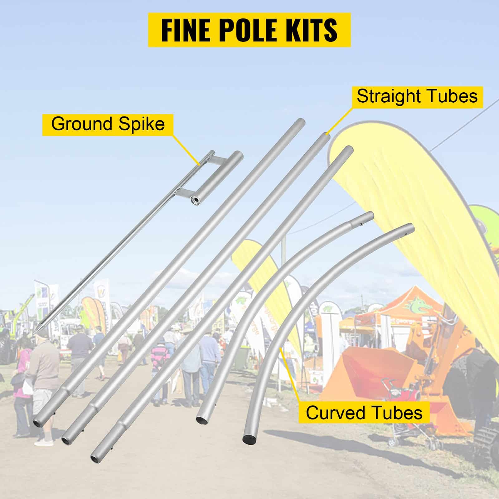 VEVOR Advertising Flag Pole, 30 x Feather Flag Bundles with Ground Spike, 16 ft Windless Flag Pole Sets with Ground Mounting Stake, 6pcs Swooper Flag Pole Kit, Sign Flag for Businesses Storefronts