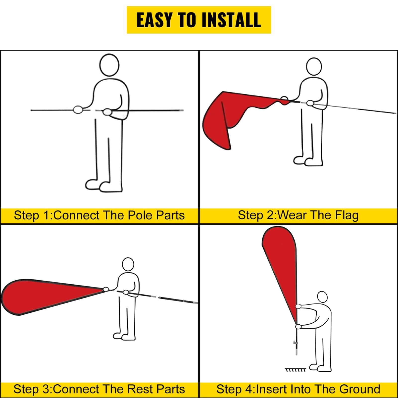 The flag tubes have snap joints that make installation a breeze. Connect them till hearing a click, put the flag (not included) on, and insert it into the ground.