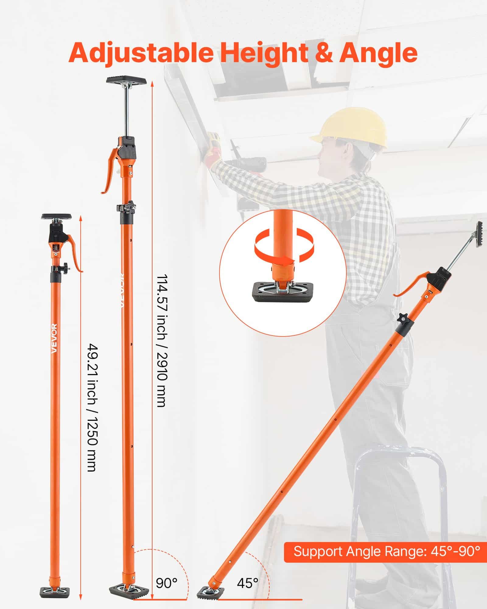 Adjustable to 45° or 90°, the support pole holds steady even in tight or sloped spaces. The textured top adds grip to avoid slipping, ideal for ceiling installs and angled fixtures.