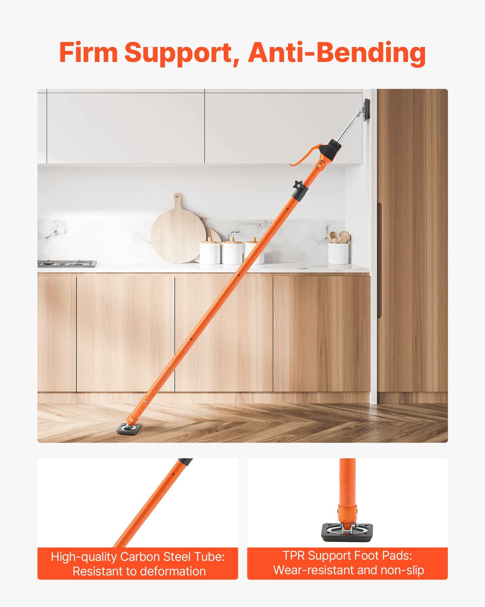 This 2-pack cabinet jack support pole set delivers efficient load support for jobsites, warehouses, and home projects. With a 198 lbs load capacity, adjustable height, and secure lock-in design, it's ideal for lifting or holding cabinets, drywall, and more.