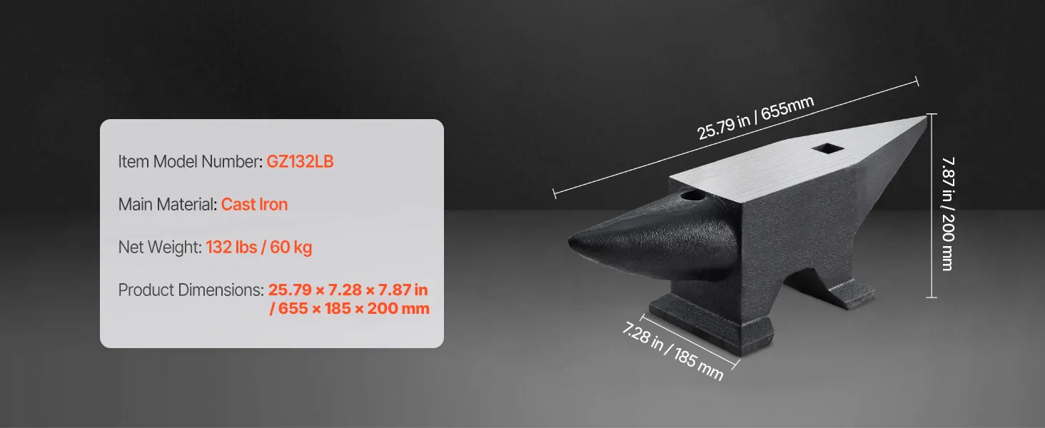 • Premium Material 132 lbs: This steel anvil is made of drop-forged, high-grade steel, which features high hardness, strength, and durability. Our steel anvil blacksmith has excellent grade material of 55 HRC. The solid base also keeps it sturdy.