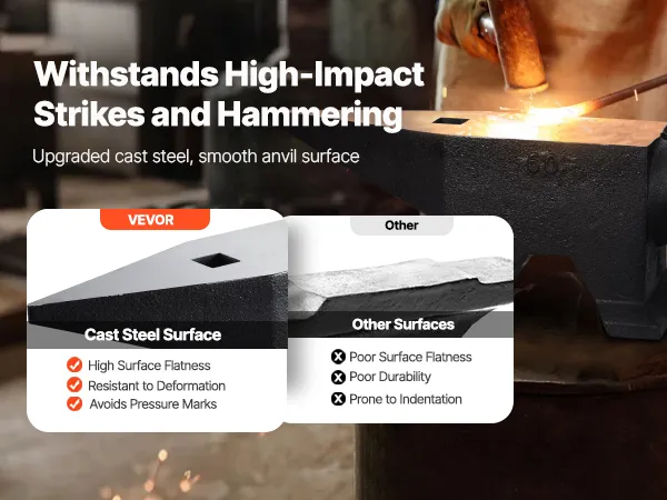 • Polishing Treatment: With fully polished surface area, the blacksmith anvil is corrosion-proof and services long-lasting use through quenching treatment. And the spray coating effectively relieves the oxidation reaction.