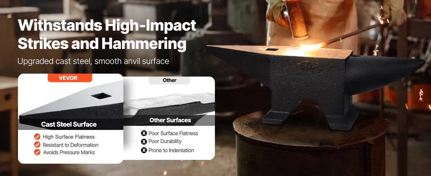• Large Working Area: This anvil metal 132 lbs/60 kg forge comes with a comfortable and wide work surface, giving a large working area. The wide countertop and flat surface provide a better user experience. It can also bear a long time thumping.
