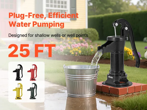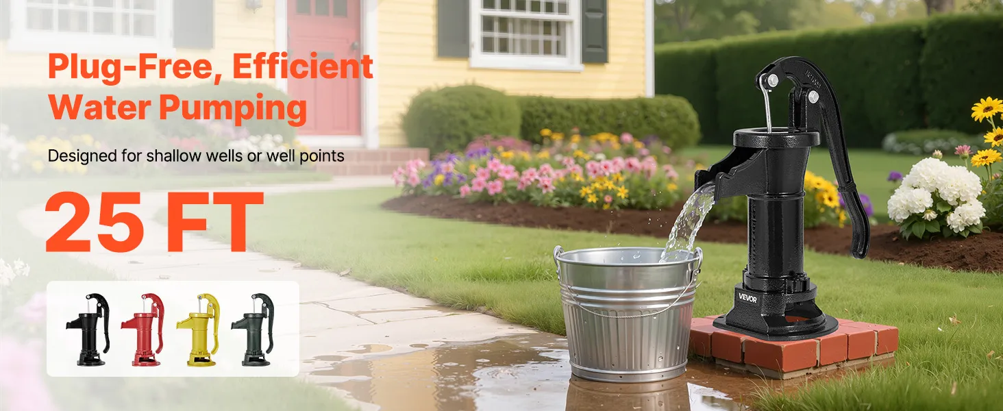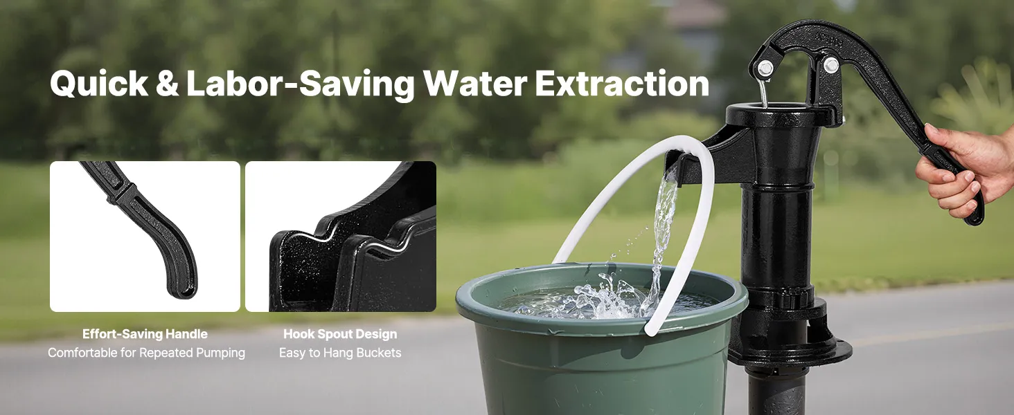 Stay prepared when the power goes out or when running water isn't available. Our well hand pitcher pump is your reliable backup water source—ideal for emergencies or areas without running water. No electricity required. You can easily and efficiently draw fresh water straight from the ground.