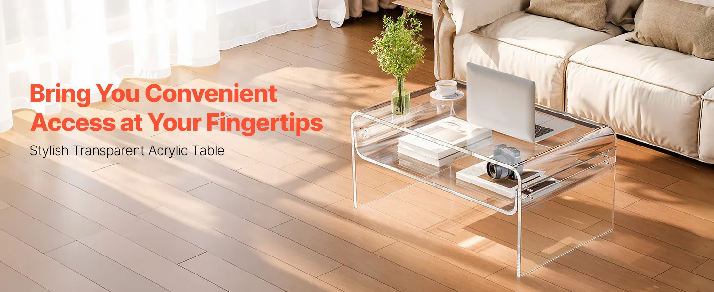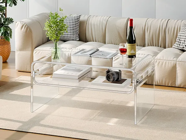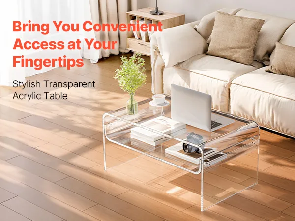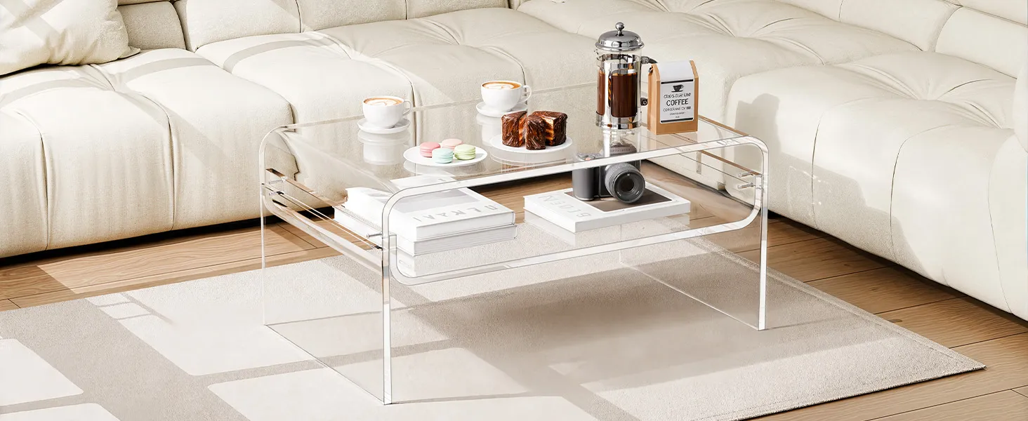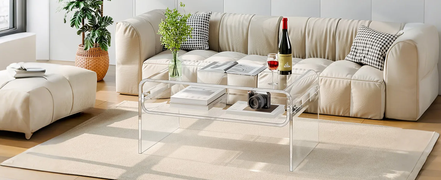 Stylish acrylic coffee table made from premium clear acrylic, featuring a crystal-like transparent design that complements any home décor. With a thick tabletop and sturdy legs, this modern table provides strong support and stability for everyday use.