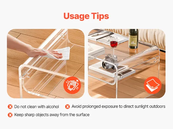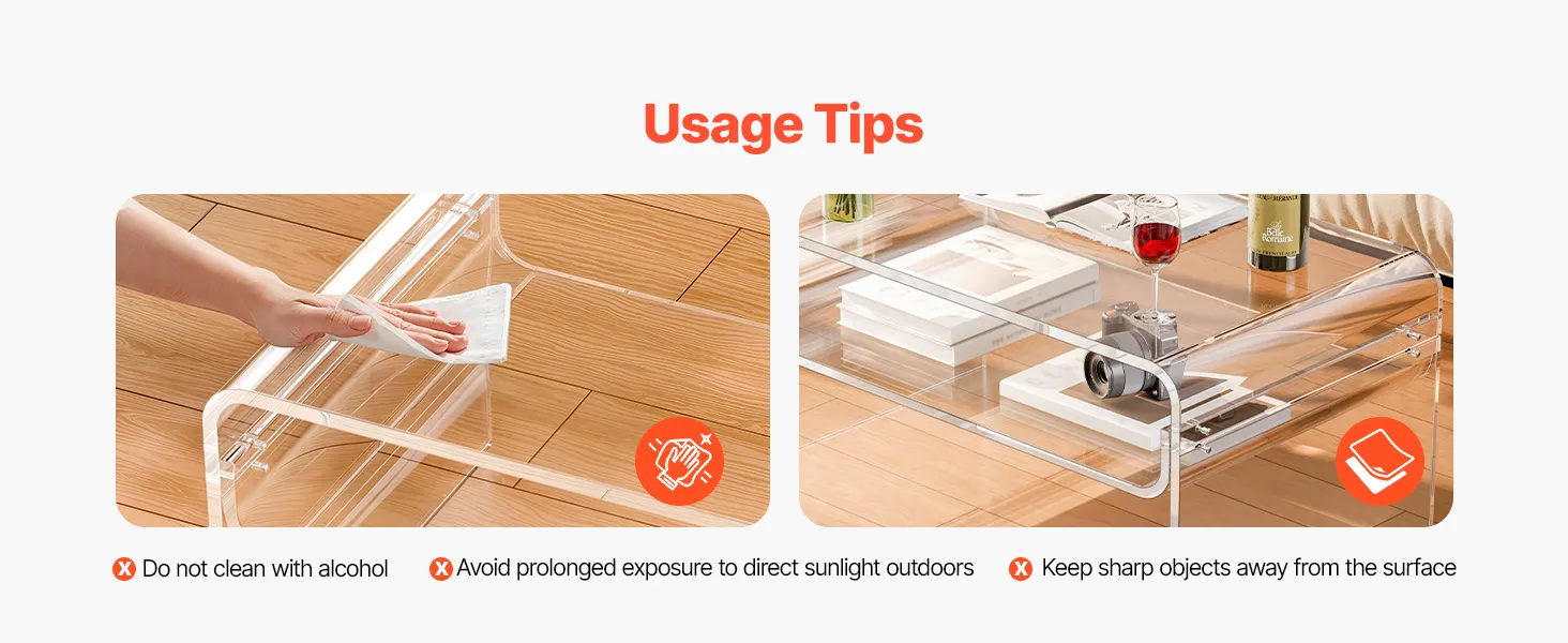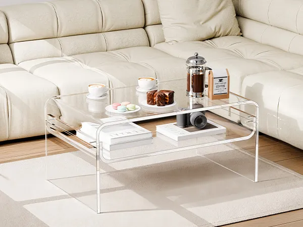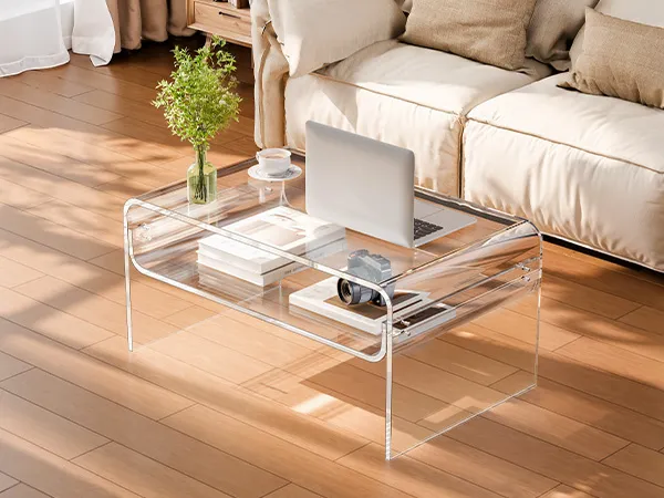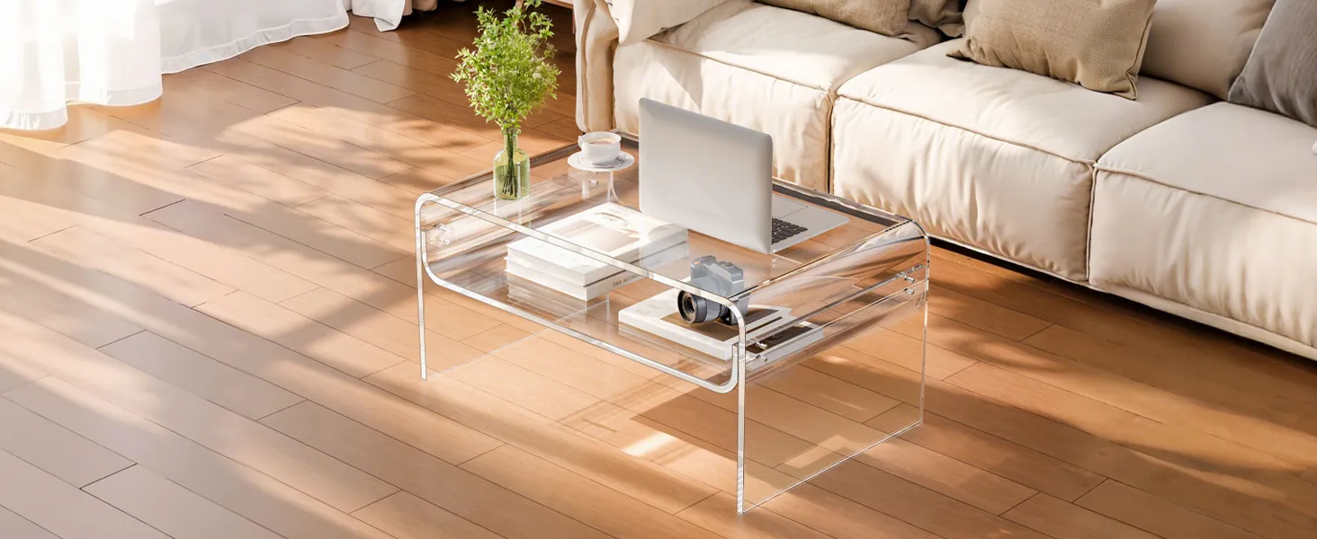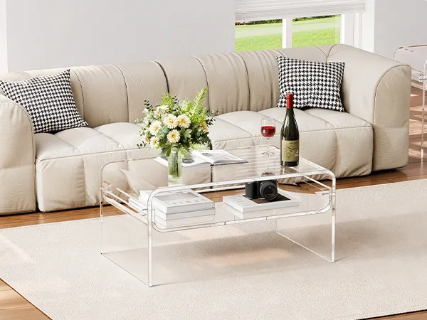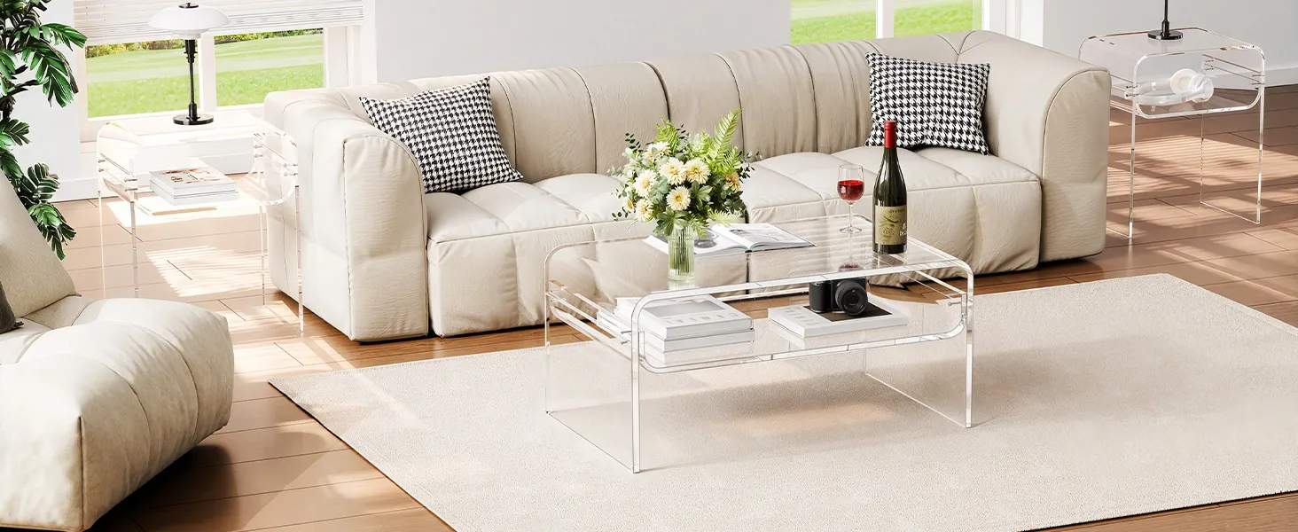 Stylish acrylic coffee table made from premium clear acrylic, featuring a crystal-like transparent design that complements any home décor. With a thick tabletop and sturdy legs, this modern table provides strong support and stability for everyday use.
