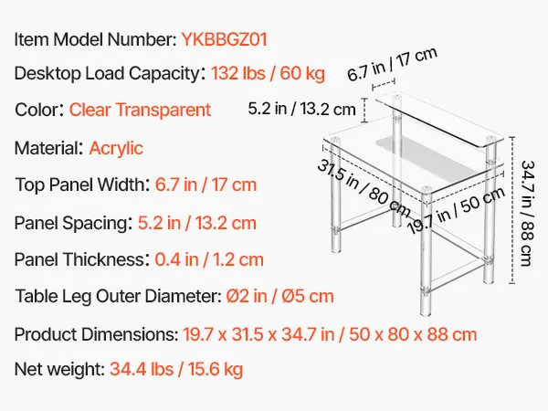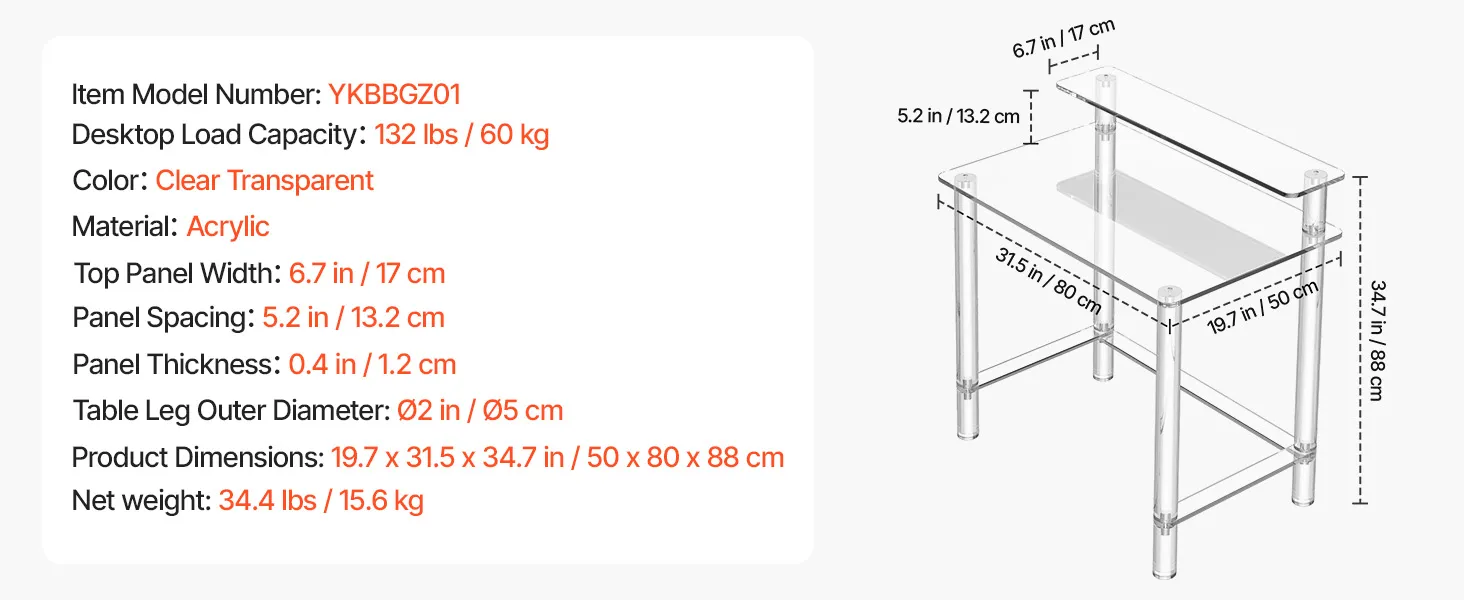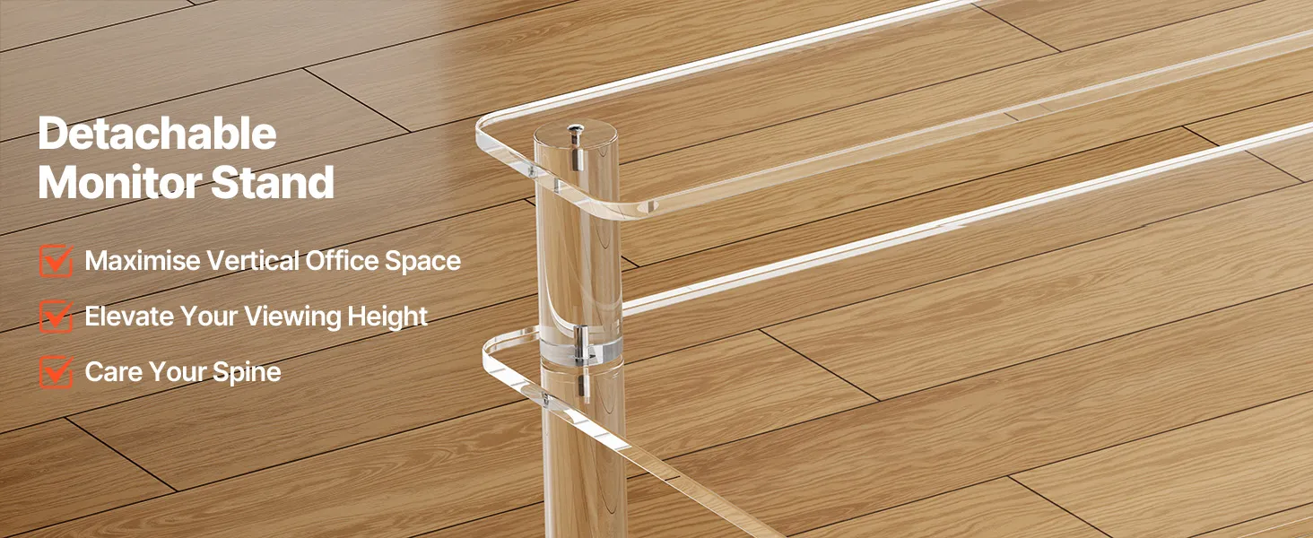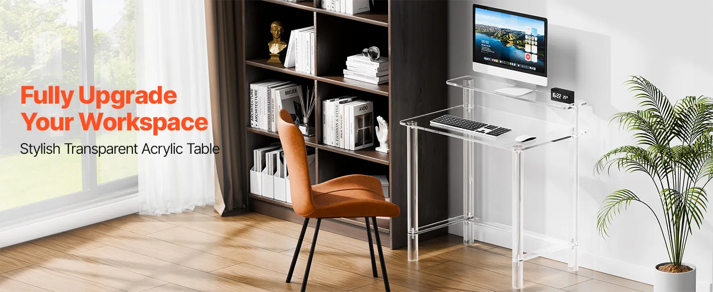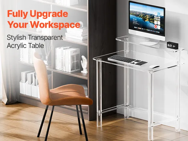 VEVOR Acrylic Table, 2 Tiers Clear Office Desk with Monitor Stand, Acrylic Study Computer Desk, Modern Side End Table Nightstand for Bedroom, Office, Study, Cloakroom, 50 x 80 x 88 cm (Clear)