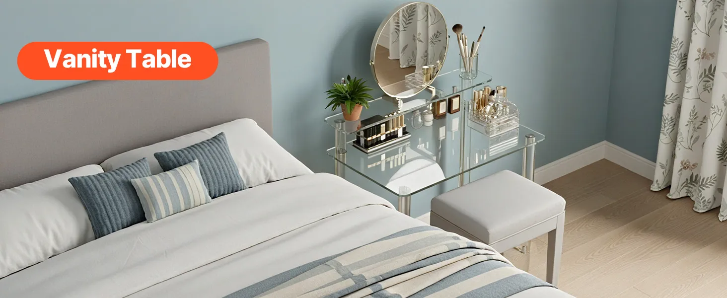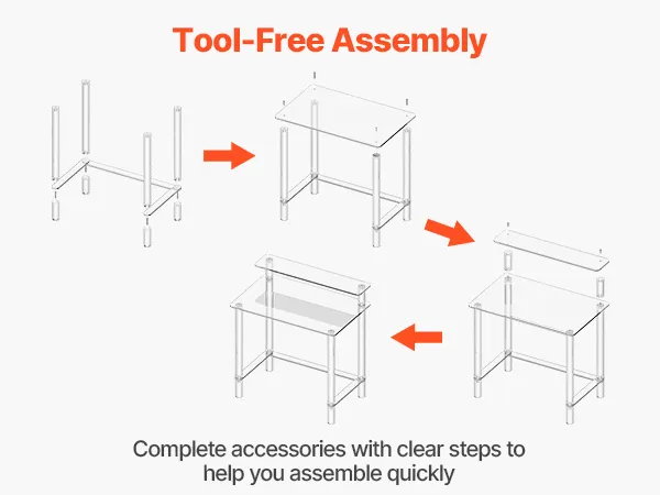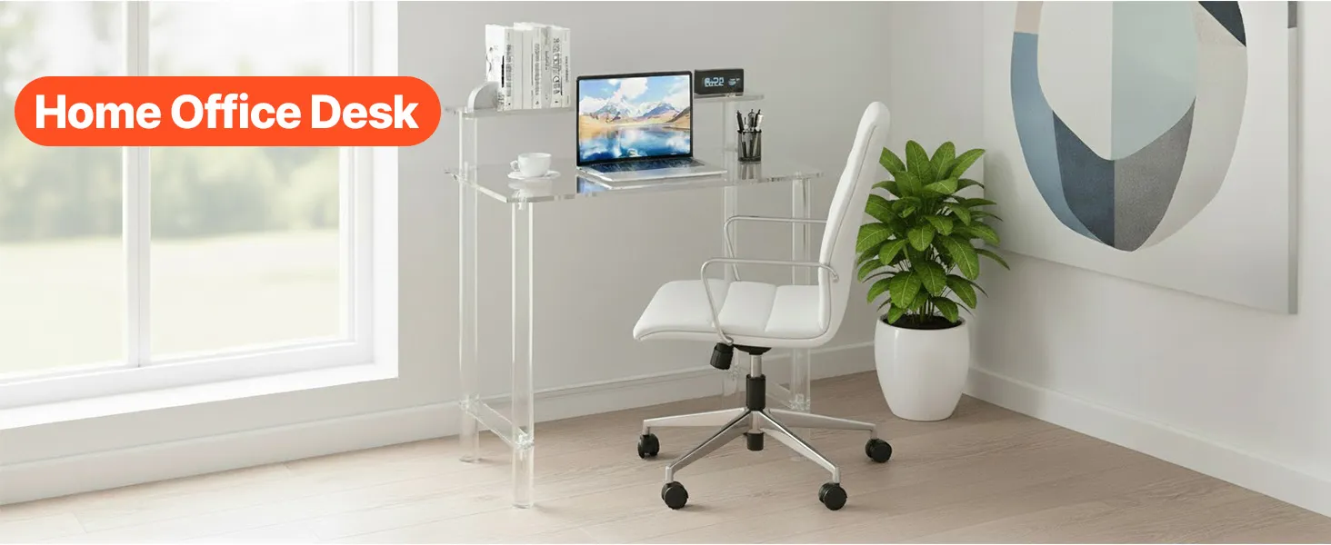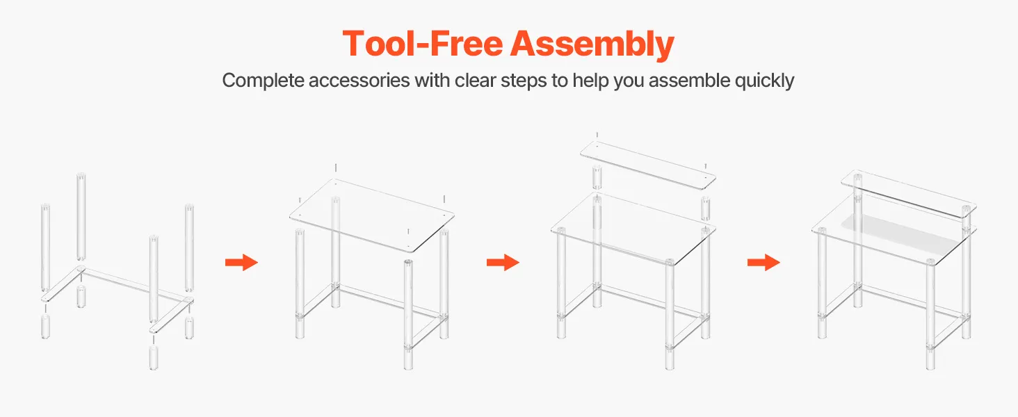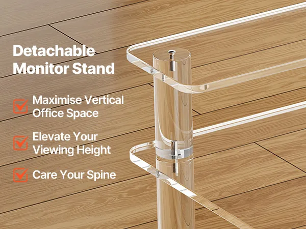 VEVOR Acrylic Table, 2 Tiers Clear Office Desk with Monitor Stand, Acrylic Study Computer Desk, Modern Side End Table Nightstand for Bedroom, Office, Study, Cloakroom, 50 x 80 x 88 cm (Clear)