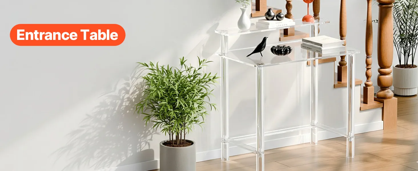 Stylish acrylic table made from premium clear acrylic, featuring a crystal-like transparent design that complements any home décor. With a thick tabletop and sturdy legs, this modern table provides strong support and stability for everyday use.