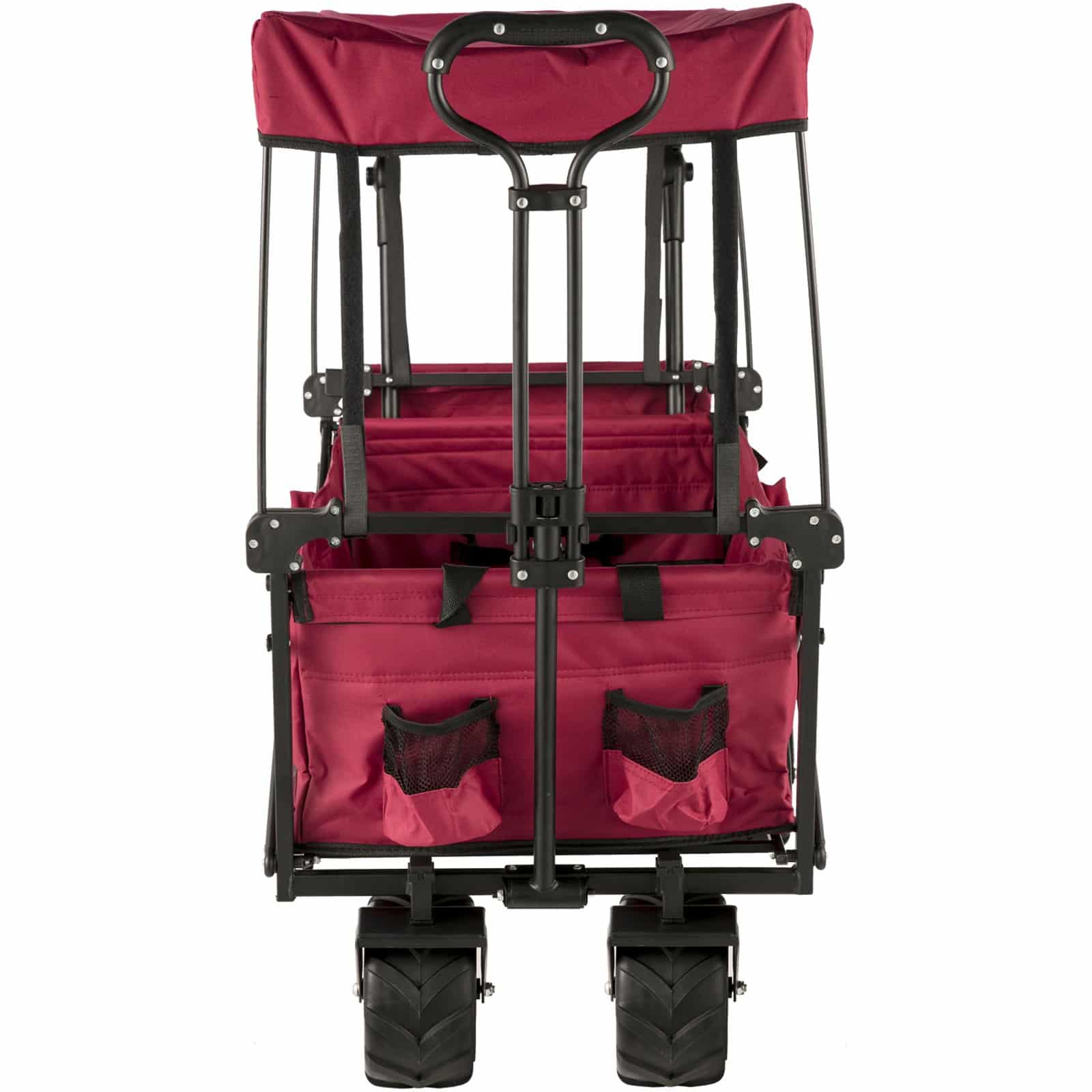 This foldable wagon has a durable steel frame with a powder-coated corrosion-proof finish. Don't worry about the performance of this wagon; its maximum carrying load is 220 lbs.