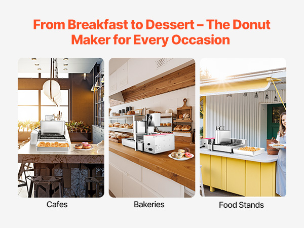 Q1: How many donuts can the machine make in an hour?A1: Our donuts making machine can produce up to 360 donuts per hour. It's designed for high-efficiency, making it great for commercial use in bakeries, cafes, and food stalls. Q2: Is the machine easy to clean?A2: Yes! The 304 food-grade stainless steel construction makes cleaning simple and quick. Just wipe down the machine after each use, and it's ready for the next batch.Q3: Can I control the temperature and cooking time?A3: Absolutely! The machine features an adjustable temperature control and precise timer, allowing you to customize the frying conditions for well cooked donuts every time.