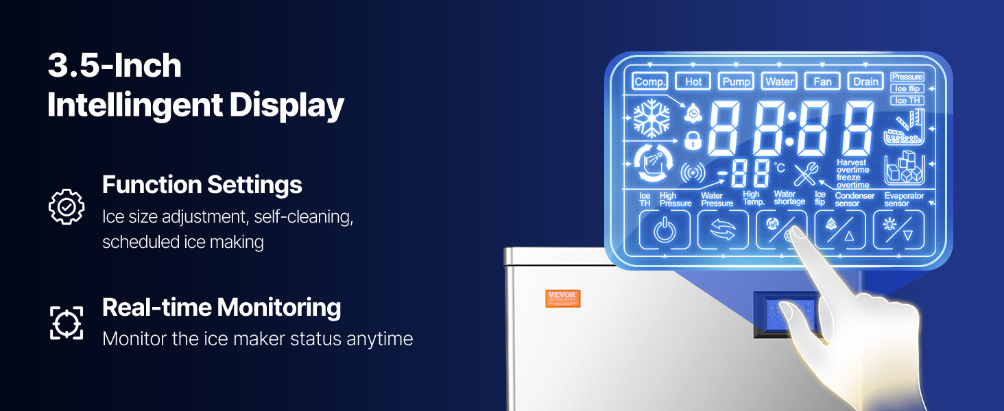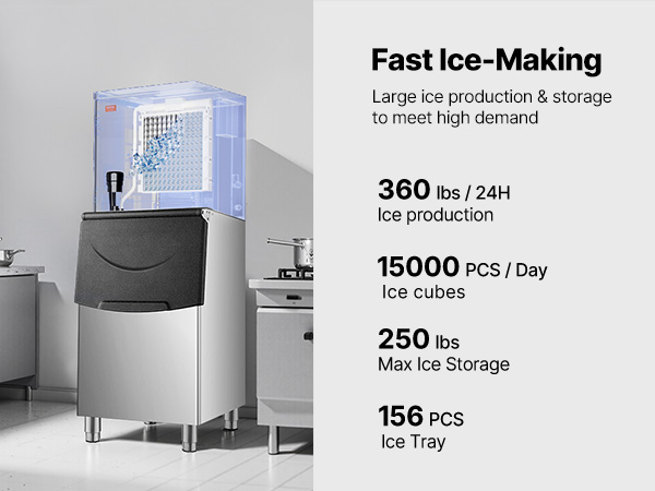 VEVOR Commercial Ice Maker Machine, 360LBS/24H Ice Making Machine with 250LBS Large Storage Bin, Auto Self-Cleaning Ice Maker Machine with Touchscreen for Bar Cafe Restaurant Business Commercial