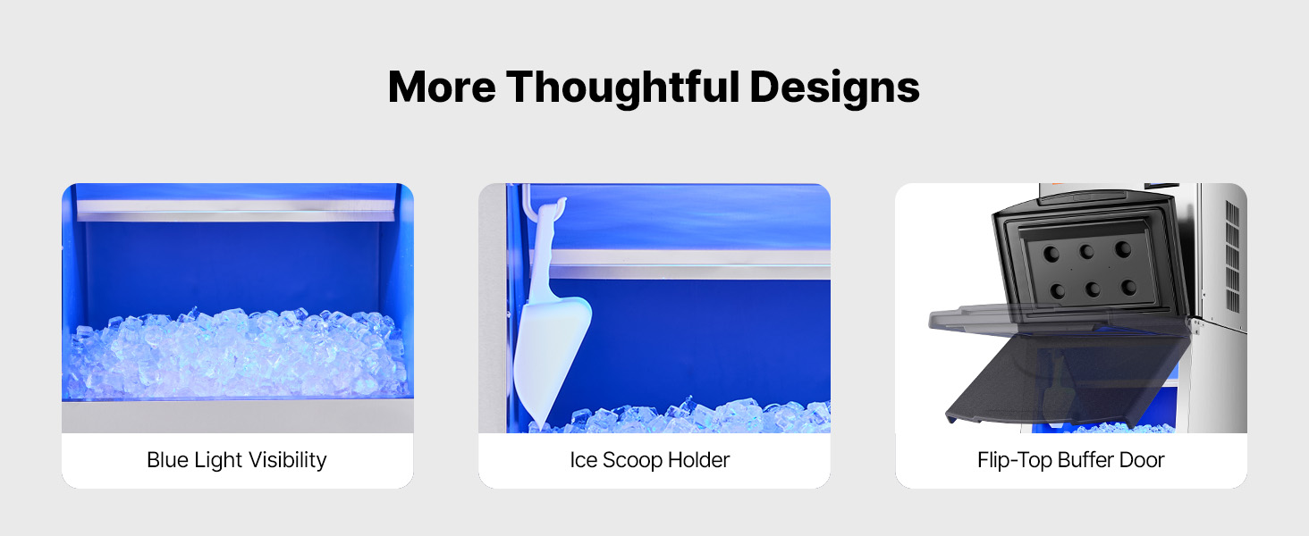 Commercial ice makers typically consist of two main parts: the ice-making head unit and the ice storage bin. This design provides enhanced flexibility and efficiency, making it ideal for businesses, home kitchens, or specialized applications.