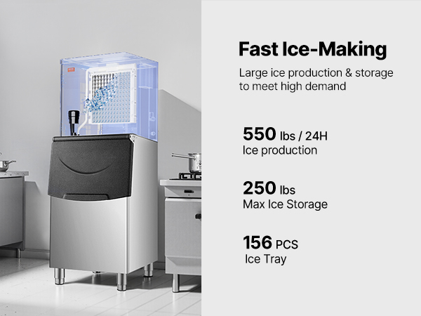VEVOR Commercial Ice Maker Machine, 550LBS/24H Ice Making Machine with 250LBS Large Storage Bin, Auto Self-Cleaning Ice Maker Machine with Touchscreen for Bar Cafe Restaurant Business Commercial