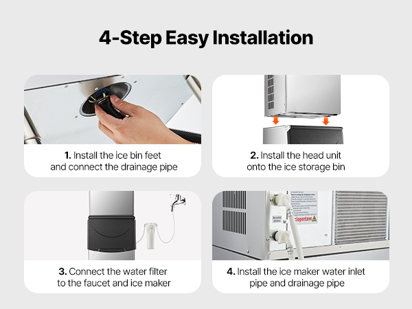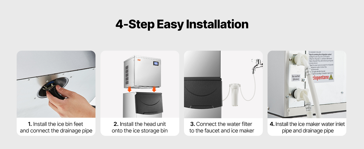 Commercial ice makers typically consist of two main parts: the ice-making head unit and the ice storage bin. This design provides enhanced flexibility and efficiency, making it ideal for businesses, home kitchens, or specialized applications.
