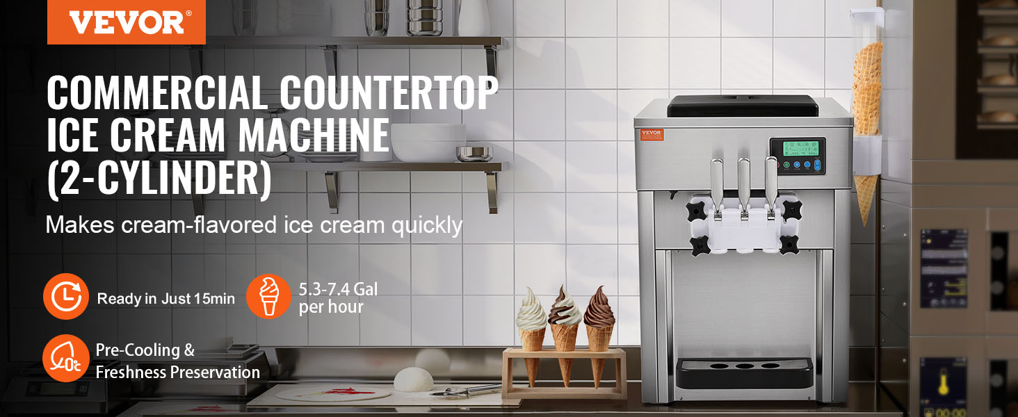 VEVOR Commercial Soft Serve Ice Cream Machine 20L/H Yield 3 Flavor Countertop