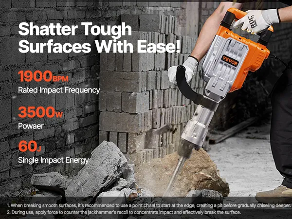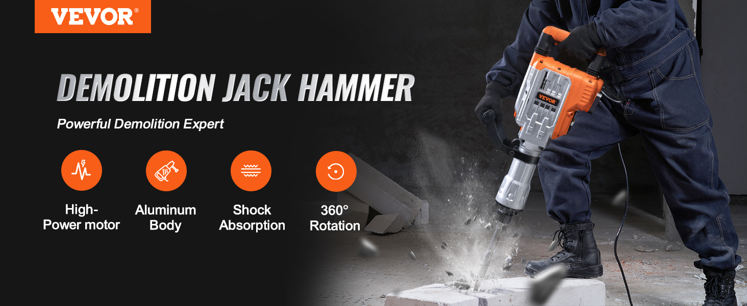 VEVOR Demolition Jack Hammer, 3500W Jack Hammer Concrete Breaker, 1900 BPM Heavy Duty Electric Jack Hammer, 2pcs Chisel with Gloves & 360°C Swiveling Front Handle for Trenching and Breaking Holes