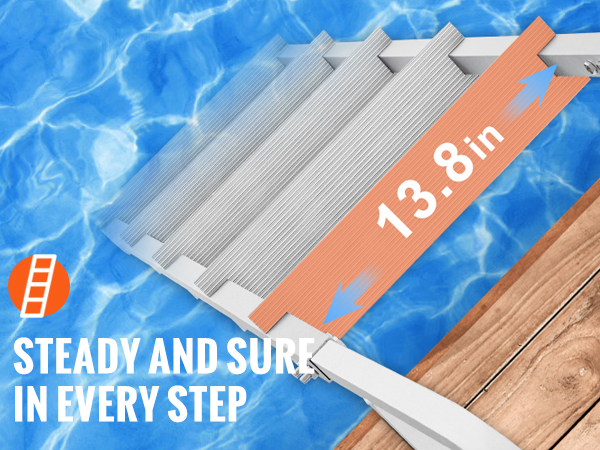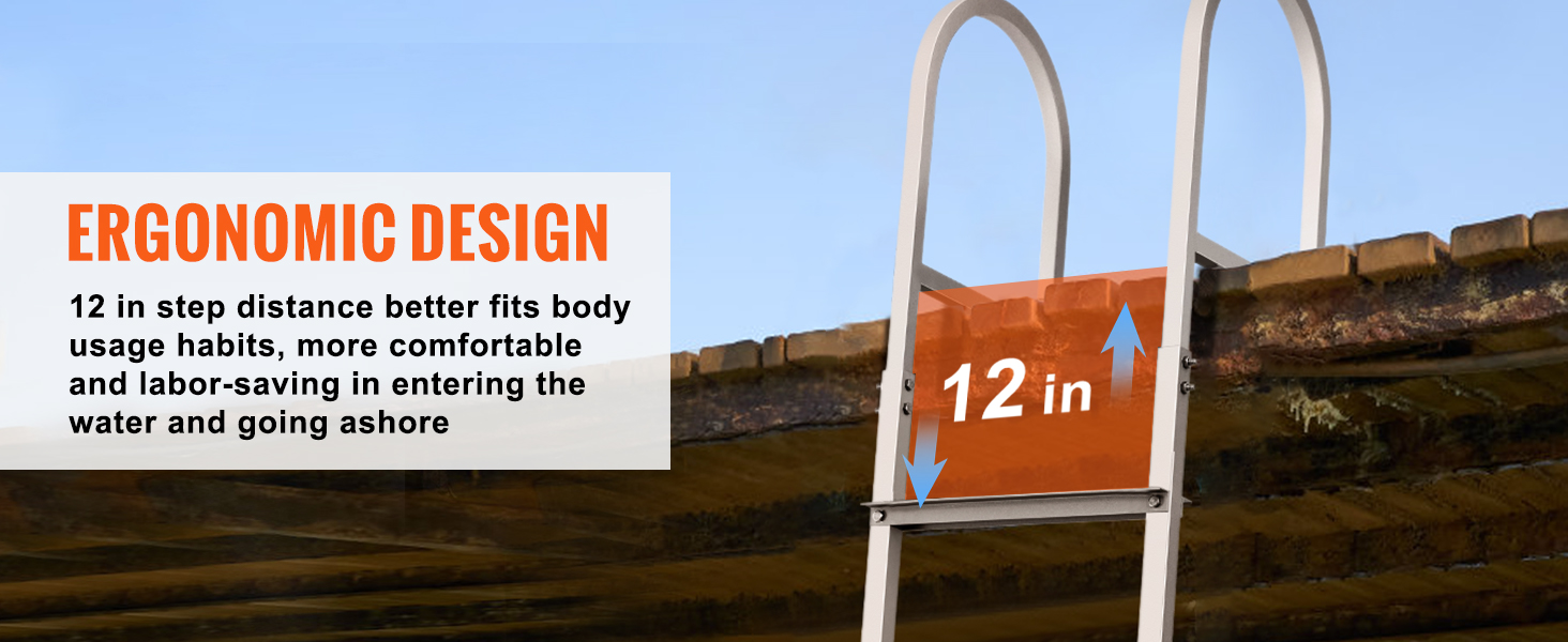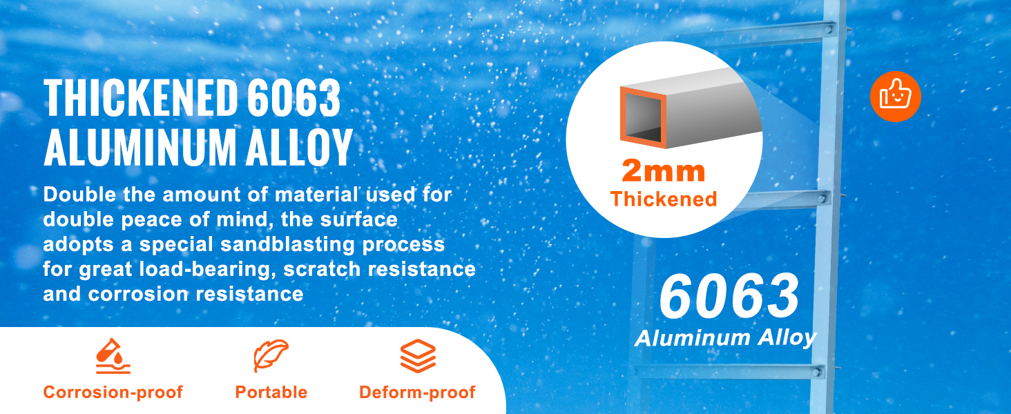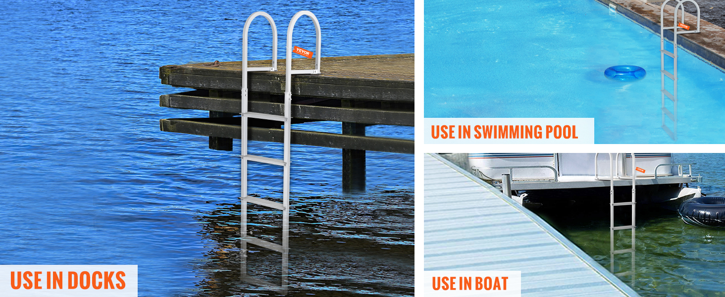This VEVOR detachable dock ladder is made of aluminum alloy frame, ensuring security, stability, and better corrosion resistance. The 3.1in widened pedals provide strong 500lbs load capacity and friction force.
