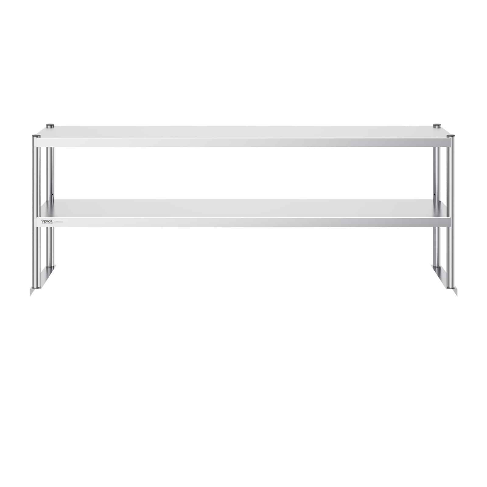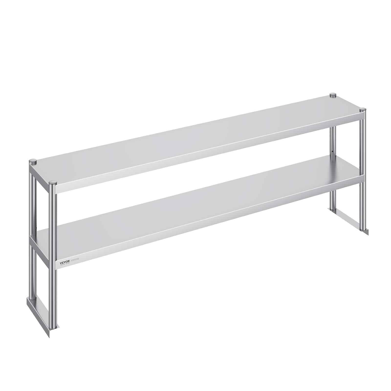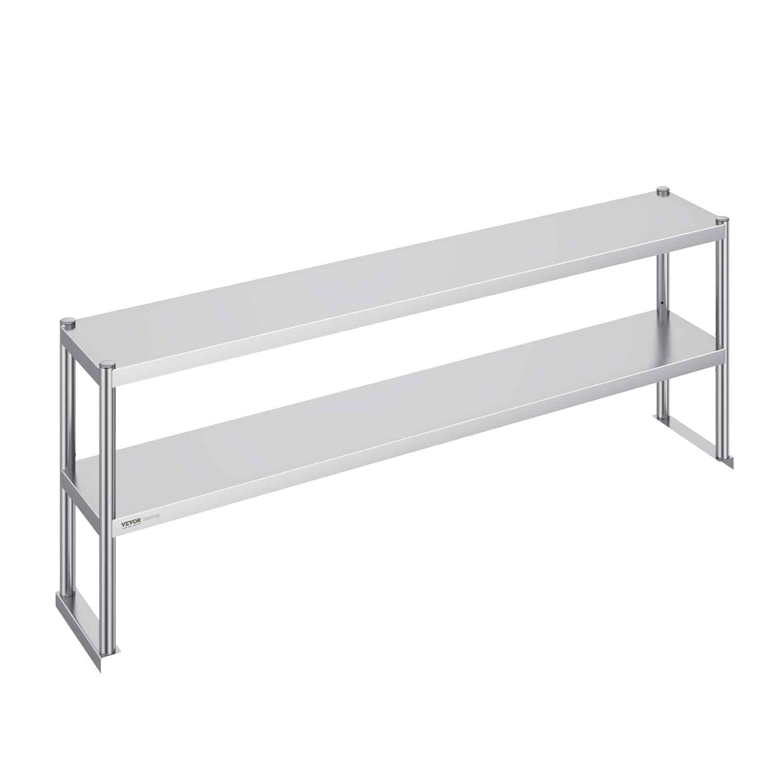VEVOR Double Overshelf, Double Tier Stainless Steel Overshelf, 12 x 72 Inch Double Deck Overshelf, Height Adjustable Overshelf Prep Work Table for Kitchen, Restaurant and Workshop