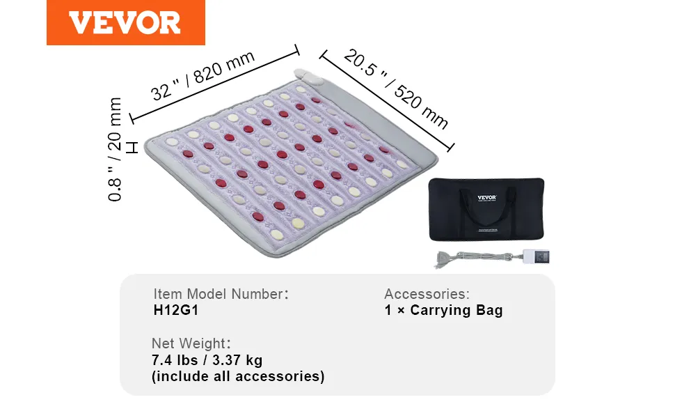 VEVOR Far Infrared Heating Pad, Amethyst Heating Pad with Jade & Tourmaline Stones, 660nm Photon Light & Negative Ions, 103-159℉ Hot Gemstones Mat with 0-720 Min Timer for Pain Relief (32" x 20")