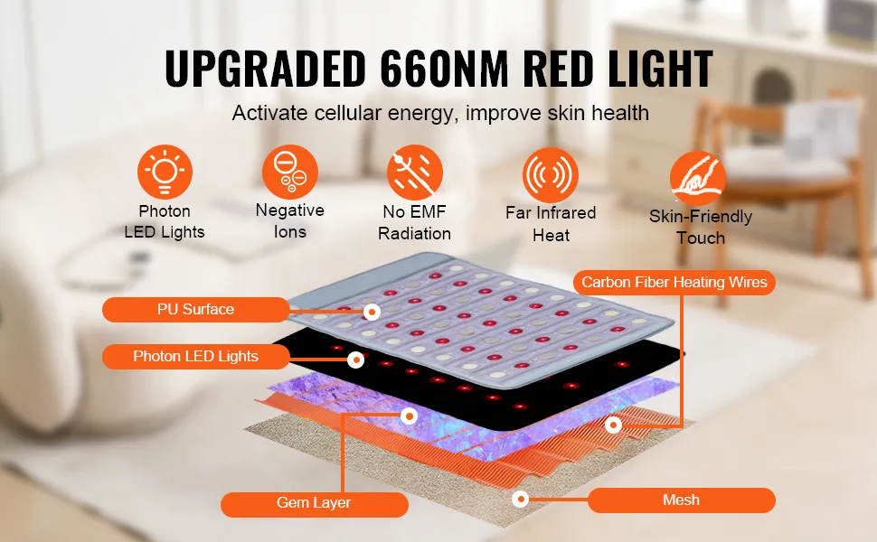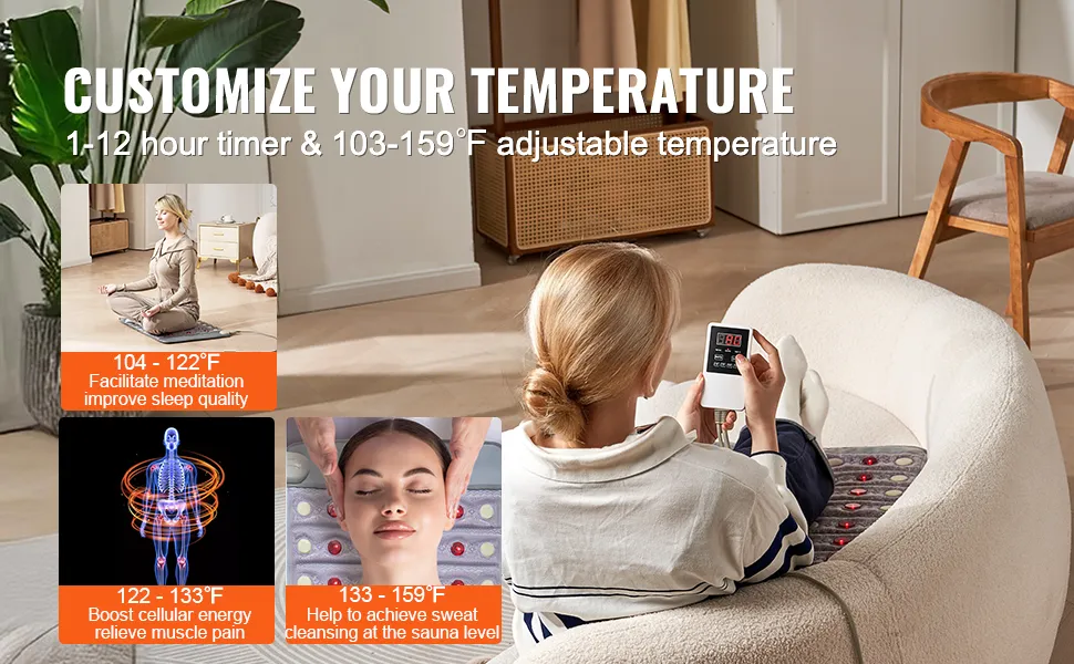 Utilizing 660nm photon red light and far infrared rays, this natural heated gemstones mat penetrates deep into muscle layers to relieve soreness and fatigue, promoting relaxation throughout your body and providing a deeper therapeutic effect for maximum comfort.