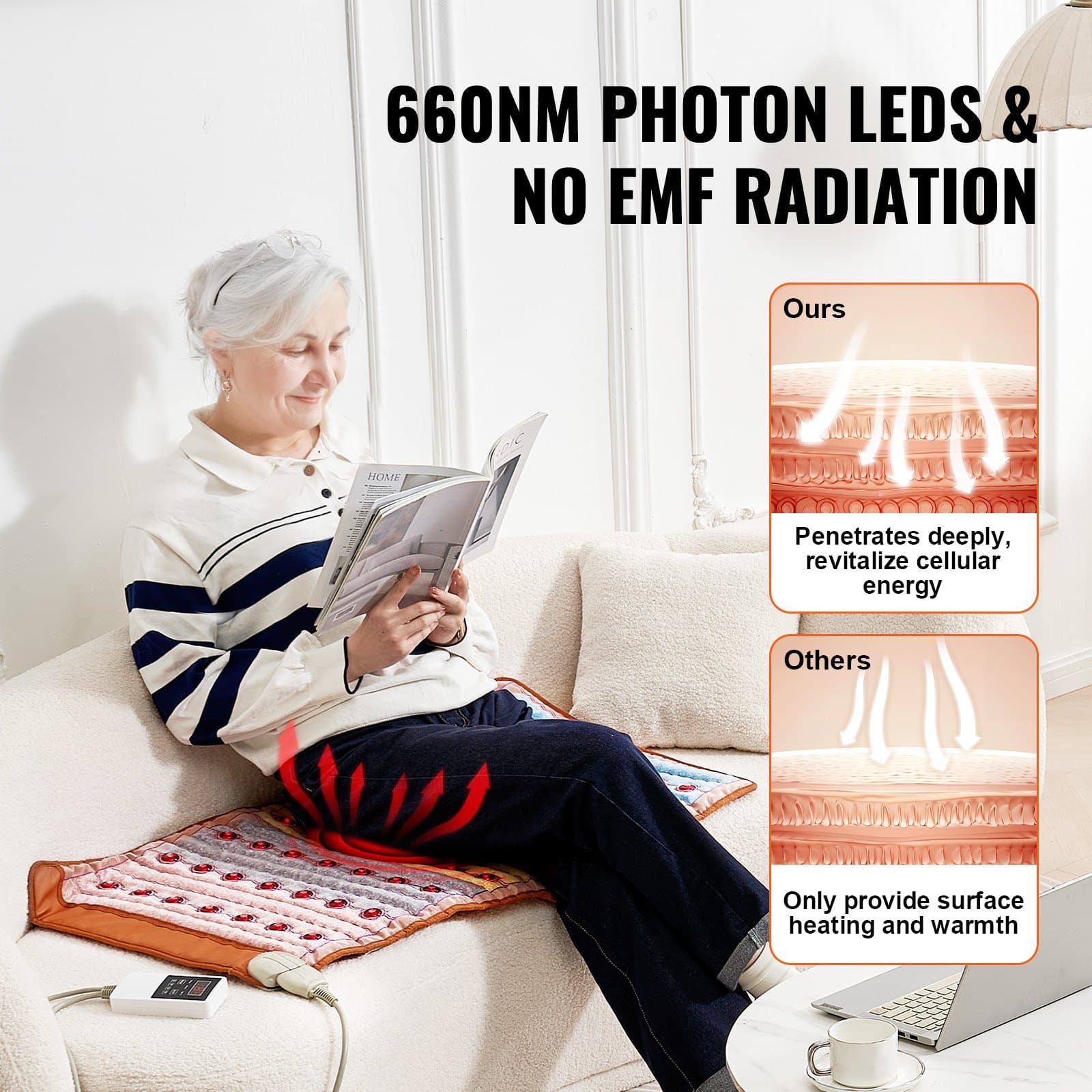 VEVOR Far Infrared Heating Pad, 103-159℉ Amethyst Heating Pad, 5 Natural Crystal Gemstones Mat with 660nm Photon Light, Negative Ions, 0-720 Min Timer for Back Waist Shoulder Pain Relief (40" x 20")