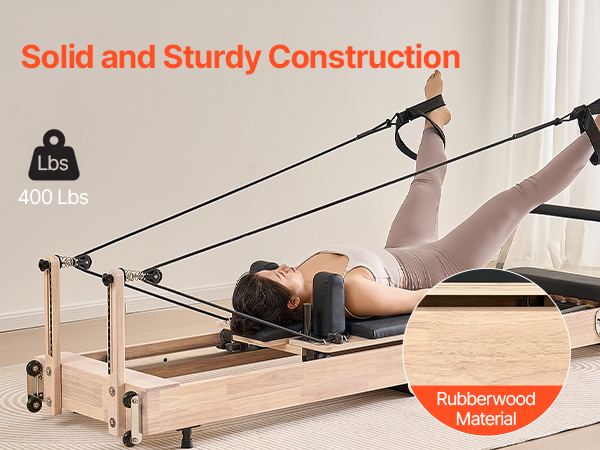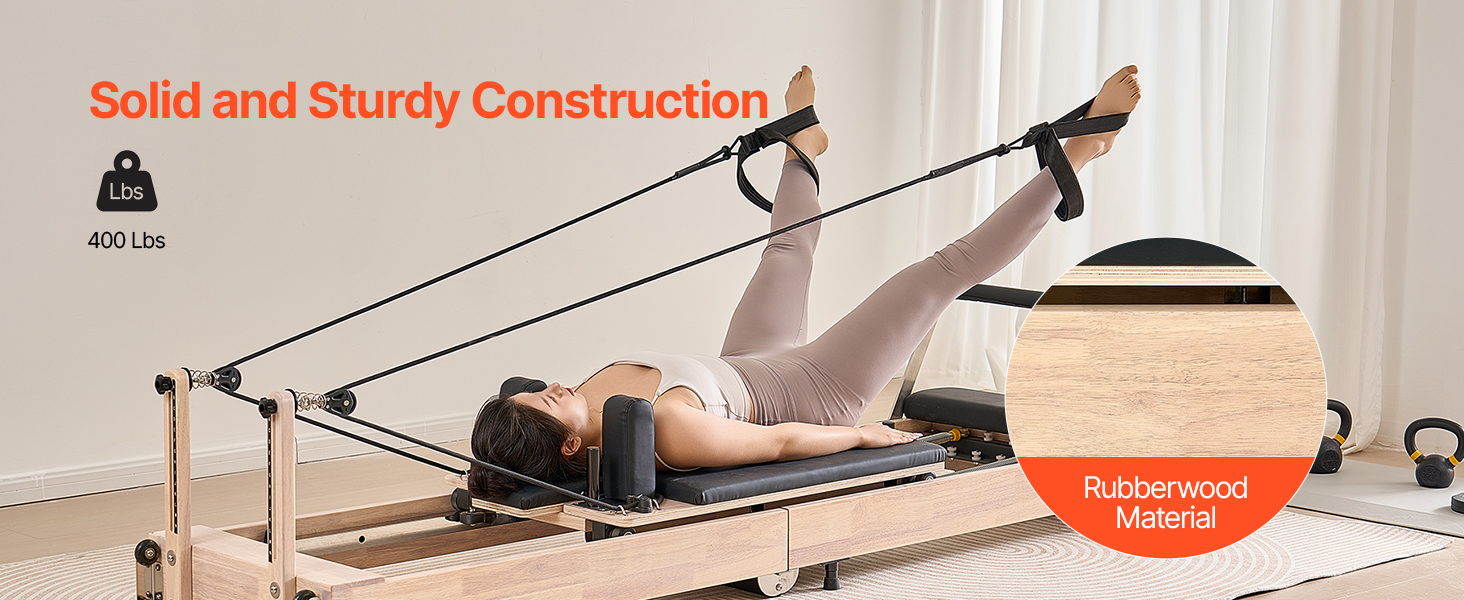 VEVOR Foldable Pilates Reformer, Wooden Pilates Workout Machine for Home Gym Studio Use, Pilates Bed with Dual Resistance- Spring & Cord, Reformer Set with Sitting Box, Up to 400 LBS