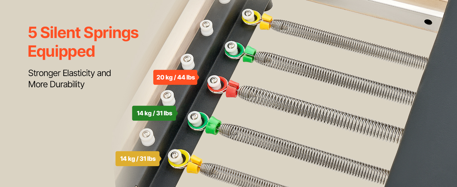 This pilates reformer features a convenient foldable design that allows for effortless storage, making it perfect for home use or smaller spaces.