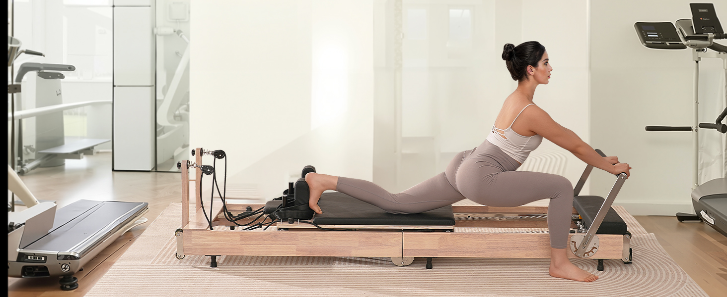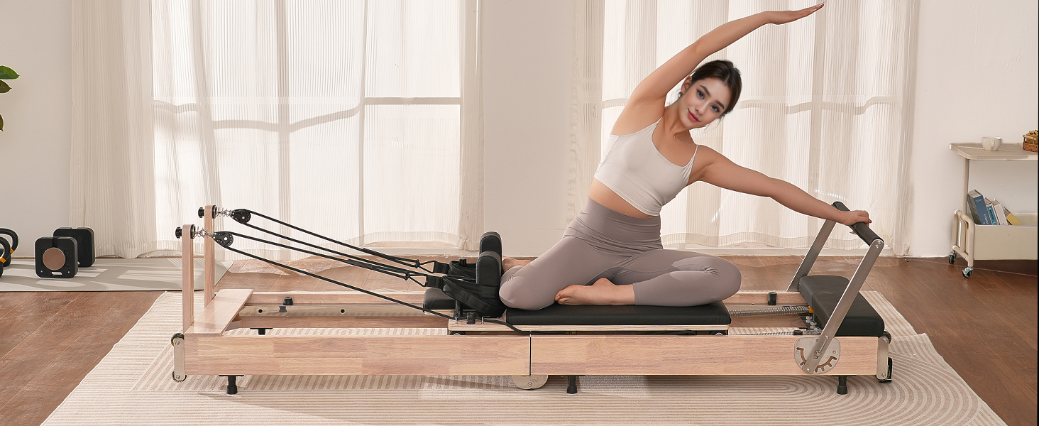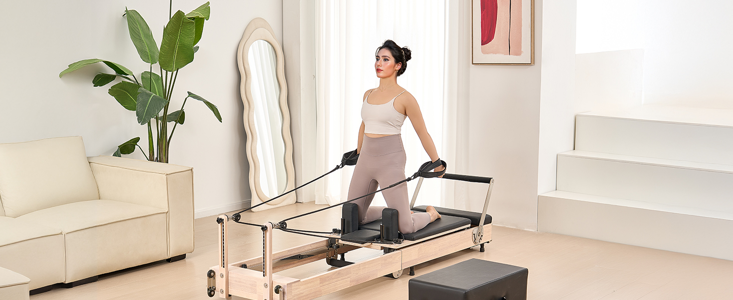This foldable reformer pilates machine, occupying minimal storage space. It offers the comfort to exercise anytime, anywhere, with easy storage for smaller spaces.